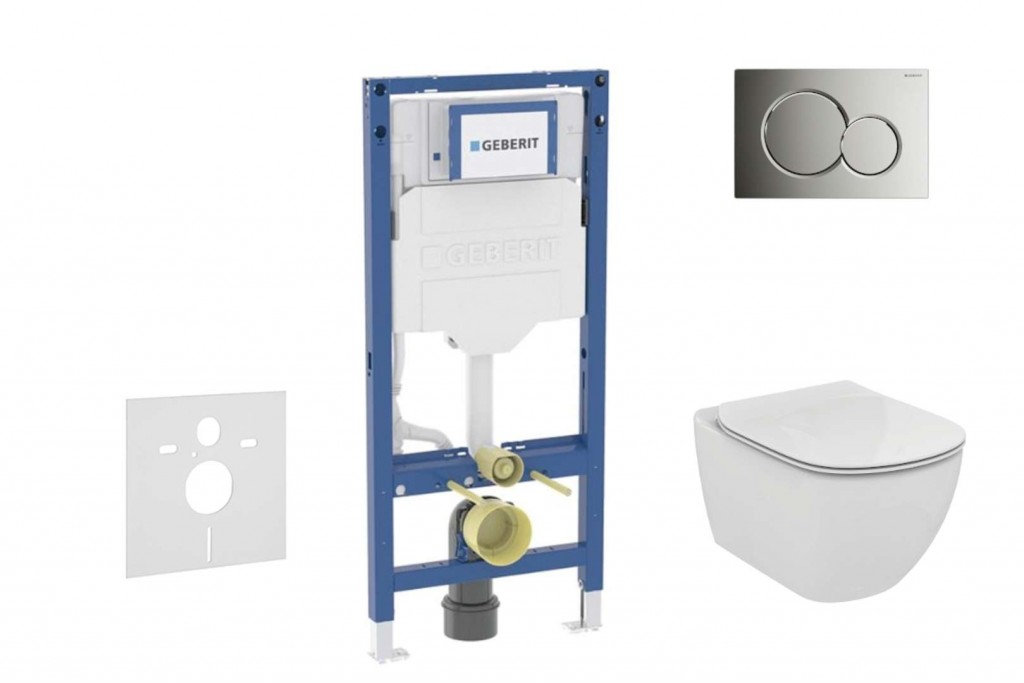 Set předstěnové instalace, klozetu a sedátka Ideal Standard Tesi, tlačítka Sigma01 Obsahuje předstěnový instalační prvek Geberit Duofix (111.300.00.6), se splachovací nádržkou pod omítku soupravu pro tlumení hluku keramický závěsný klozet Ideal Standard Tesi duroplastové ultra ploché WC sedátko Ideal Standard Tesi 2-činné ovládací tlačítko Geberit Sigma01, barva: lesklý chrom stavební souprava pro předstěnovou montáž není součástí dodávky, je třeba objednat zvlášť Tento instalační set je dostupný v dalších variantách provedení ovládacího tlačítka. Montážní prvek Duofix pro závěsné WC se splachovací nádržkou pod omítku Sigma 12 cm Účel použití pro konstrukce prováděné suchým procesem k montáži do předstěnových instalací částečně vysokých nebo vysokých na výšku místnosti k montáži do instalačních stěn vysokých na výšku místnosti k montáži do systémových stěn Geberit Duofix částečně vysokých nebo vysokých na výšku místnosti pro závěsná WC s připojovacími rozměry podle EN 33 a přesahem do 70 cm pro 1-činné, 2 -činné nebo Start/Stop splachování pro tloušťky podlahy 0–25 cm Vlastnosti samonosný rám s nanesenou práškovou barvou rám připravený pro podpěry u WC keramik s malou opěrnou plochou podpěry pozinkované podpěry s protiskluzovou úpravou patní desky otočné, vhodné pro montáž do U-profilů UW 50 a UW 75 připojovací koleno pro montáž bez nářadí v různých hloubkách, rozsah nastavení 45 mm splachovací nádržka pod omítku izolovaná proti orosování u nastavení z výroby je možné okamžité dodatečné spláchnutí montážní a servisní práce na splachovací nádržce pod omítku bez nářadí přívod vody vzadu nebo nahoře uprostřed kryt pro hrubou montáž pro servisní otvor chrání před vlhkostí a nečistotami kryt pro hrubou montáž pro servisní otvor s možností zkrácení vybaven trubkovou chráničkou pro přívodní potrubí k připojení sprchovacích WC Geberit AquaClean s možností upevnění pro přívod elektřiny Technické údaje tlak při průtoku: 10-1000 kPa maximální teplota vody: 25 °C splachovací množství, nastavení ve výrobě: 6 a 3 l velké splachovací množství, rozsah nastavení: 4 / 4.5 / 6 / 7.5 l malé splachovací množství, rozsah nastavení: 2-4 l výpočtový průtok: 0.09 l/s minimální přetlak pro výpočtový průtok: 10 kPa Obsah dodávky přívod vody R 1/2", vhodný pro MF, s integrovaným rohovým ventilem a ručním ovládacím kolečkem kryt pro hrubou montáž pro servisní otvor připojovací souprava pro WC, Ø 90 mm připojovací koleno 90° z PE-HD, Ø 90 mm přechodka z PE-HD, Ø 90 / 110 mm upevňovací materiál Stavební souprava pro předstěnovou montáž není součástí balení. Závěsný klozet Ideal Standard Tesi pro podomítkovou nádržku se splachovací kapacitou od 4,5 l rozměry: 360 x 530 x 335 mm materiál: sanitární keramika skryté upevnění hluboké splachování glazováno pod kruhem Klozetové sedátko ultra tenké ploché sedátko barva: bílá lehce odnímatelné pro snadnou údržbu Ovládací tlačítko Sigma01, pro 2 množství splachování rozměry: 246 x 164 mm materiál: plast barva provedení: lesklý chrom k ovládání splachování u splachovacích nádržek pod omítku Geberit Sigma upevňovací rámeček 2 stavitelné úchytky 2 tyčky tlačítka tyčky tlačítka jsou zvukově izolované, rychlé nastavení bez nářadí