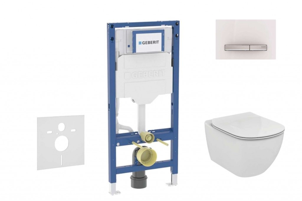 Set předstěnové instalace, klozetu a sedátka Ideal Standard Tesi, tlačítka Sigma50, alpská bílá Obsahuje předstěnový instalační prvek Geberit Duofix (111.300.00.6), se splachovací nádržkou pod omítku soupravu pro tlumení hluku (SP 156SET) keramický závěsný klozet Ideal Standard Tesi duroplastové ultra ploché WC sedátko Ideal Standard Tesi 2-činné ovládací tlačítko Geberit Sigma50, barva: alpská bílá stavební souprava pro předstěnovou montáž není součástí dodávky, je třeba objednat zvlášť Tento instalační set je dostupný v dalších variantách provedení ovládacího tlačítka. Montážní prvek Duofix pro závěsné WC se splachovací nádržkou pod omítku Sigma 12 cm Účel použití pro konstrukce prováděné suchým procesem k montáži do předstěnových instalací částečně vysokých nebo vysokých na výšku místnosti k montáži do instalačních stěn vysokých na výšku místnosti k montáži do systémových stěn Geberit Duofix částečně vysokých nebo vysokých na výšku místnosti pro závěsná WC s připojovacími rozměry podle EN 33 a přesahem do 70 cm pro 1-činné, 2 -činné nebo Start/Stop splachování pro tloušťky podlahy 0–25 cm Vlastnosti samonosný rám s nanesenou práškovou barvou rám připravený pro podpěry u WC keramik s malou opěrnou plochou podpěry pozinkované podpěry s protiskluzovou úpravou patní desky otočné, vhodné pro montáž do U-profilů UW 50 a UW 75 připojovací koleno pro montáž bez nářadí v různých hloubkách, rozsah nastavení 45 mm splachovací nádržka pod omítku izolovaná proti orosování u nastavení z výroby je možné okamžité dodatečné spláchnutí montážní a servisní práce na splachovací nádržce pod omítku bez nářadí přívod vody vzadu nebo nahoře uprostřed kryt pro hrubou montáž pro servisní otvor chrání před vlhkostí a nečistotami kryt pro hrubou montáž pro servisní otvor s možností zkrácení vybaven trubkovou chráničkou pro přívodní potrubí k připojení sprchovacích WC Geberit AquaClean s možností upevnění pro přívod elektřiny Technické údaje tlak při průtoku: 10-1000 kPa maximální teplota vody: 25 °C splachovací množství, nastavení ve výrobě: 6 a 3 l velké splachovací množství, rozsah nastavení: 4 / 4.5 / 6 / 7.5 l malé splachovací množství, rozsah nastavení: 2-4 l výpočtový průtok: 0.09 l/s minimální přetlak pro výpočtový průtok: 10 kPa Obsah dodávky přívod vody R 1/2", vhodný pro MF, s integrovaným rohovým ventilem a ručním ovládacím kolečkem kryt pro hrubou montáž pro servisní otvor připojovací souprava pro WC, Ø 90 mm připojovací koleno 90° z PE-HD, Ø 90 mm přechodka z PE-HD, Ø 90 / 110 mm upevňovací materiál Stavební souprava pro předstěnovou montáž není součástí balení. Závěsný klozet Ideal Standard Tesi pro podomítkovou nádržku se splachovací kapacitou od 4,5 l rozměry: 360 x 530 x 335 mm materiál: sanitární keramika skryté upevnění hluboké splachování glazováno pod kruhem Klozetové sedátko ultra tenké ploché sedátko barva: bílá lehce odnímatelné pro snadnou údržbu Ovládací tlačítko Sigma50, pro 2 množství splachování rozměry: 246 x 164 mm materiál: plast barva provedení: alpská bílá tlačítka s vrstvou easy-to-clean k ovládání splachování u splachovacích nádržek pod omítku Geberit Sigma upevňovací rámeček 2 stavitelné úchytky 2 tyčky tlačítka tyčky tlačítka jsou zvukově izolované, rychlé nastavení bez nářadí