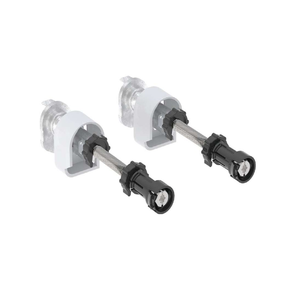 Souprava stěnových kotev Duofix pro samostatnou a systémovou instalaci souprava pro předstěnovou montáž Geberit Duofix pro jednotlivou a systémovou montáž k upevnění instalačních prvků Geberit Duofix před stěny prováděné suchým procesem a masivní stěny k upevnění instalačních prvků Geberit Duofix na systémový profil bez nářadí k upevnění opláštění u částečně vysokých předstěnových instalací zepředu plynule hloubkově nastavitelný, s rychlým nastavením připojení na stěnu otočné 360° závitová tyč M10, pozinkovaná Obsah dodávky 2x montážní kusy