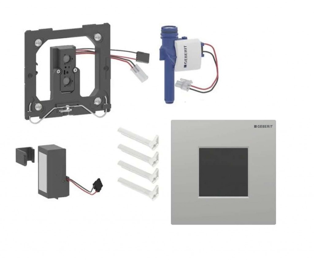 Ovládání splachování pisoáru Geberit, s elektronickým spuštěním splachování, napájení z baterie Barva chrom matný Materiál tlakový zinkový odlitek K automatickému ovládání splachování pisoárů Krycí deska s pojistnou závorkou Spolehlivá IR detekce vzdálenosti Infračervený senzor samonastavitelný Infračervené čidlo pro zaznamenání uživatele se zatmívacím pozadím Povrch pokryt vrstvou easy-to-clean Nastavitelný hybridní režim šetřící vodu Doba splachování nastavitelná Interval spláchnutí nastavitelný Dynamické přizpůsobení času splachování Předspláchnutí nastavitelné Přestavitelný na provoz s pisoárem s víkem Jednorázové spláchnutí po aktivaci přívodu proudu Napájení z baterie Funkce je možné servisním dálkovým ovládáním nastavit a dotazovat Nastavení přístroje a obsluha s mobilním zařízením přes integrované rozhraní Bluetooth Kompatibilní s aplikací Geberit Control App Spojené vodičem k síti s Geberit Gateway prostřednictvím konvertoru GEBUS Bezdrátově spojený k síti s Geberit Gateway přes Bluetooth Kompatibilní s Geberit Connect Výstraha v případě slabé baterie Funkce zavření ventilu v případě prázdné baterie Spuštění splachování lze deaktivovat Splachovací množství lze snížit přes regulační šroub soupravy pro hrubou montáž až na 0,5 l na spláchnutí Skupina armatur II podle DIN 4109 Pro instalační prvky Geberit pro pisoár s ovládáním zepředu K montáži do souprav pro hrubou montáž pro ovládání splachování pisoárů Geberit (od roku výroby 2009) Technické parametry: Typ baterie Alkalická baterie (1,5 V AA) Životnost dodané baterie 2 roky Druh ochrany IP45 Provozní napětí 3 V DC Tlak při průtoku 100–800 kPa Zkušební tlak vody max. 1600 kPa Zkušební tlak vzduch / inertní plyn max. 300 kPa Teplota vody max. 30 °C Průtok při tlaku 1 bar bez omezovače průtoku 0,3 l/s Průtok při tlaku 1 bar s omezovačem průtoku 0,18 l/s Minimální přetlak 100 kPa Relativní vlhkost vzduchu ≤ 100 % Výpočtový průtok 0,23 l/s Intervalové splachování, rozsah nastavení 1 – 168 h Intervalové splachování, nastavení ve výrobě 24 h Intervalová doba proplachování, rozsah nastavení 3 – 180 s Intervalová doba proplachování, nastavení ve výrobě 5 s Doba zdržení, rozsah nastavení 3 – 15 s Doba zdržení, nastavení ve výrobě 7 s Doba proplachování, rozsah nastavení 1 – 15 s Doba proplachování, nastavení ve výrobě 7 s Tvar tlačítka hranatý Rozsah dodávky: Typ 01 krycí deska, hranaté IR okno Infračervené ovládání, předmontované na upevňovacím rámečku Elektromagnetický ventil Pouzdro pro baterii 2 alkalické manganové baterie typu AA, 1,5 V Upevňovací materiál Ilustrační foto