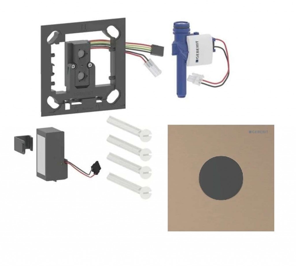 Ovládání splachování pisoáru Geberit, s elektronickým spuštěním splachování Barva kartáčovaná mosaz Materiál nerezová ocel Krycí deska s pojistnou závorkou Spolehlivá IR detekce vzdálenosti Infračervený senzor samonastavitelný se zatmívacím pozadím Nastavitelný hybridní režim šetřící vodu Povrch upraven vrstvou easy-to-clean Doba splachování nastavitelná Interval spláchnutí nastavitelný Dynamické přizpůsobení času splachování Předspláchnutí nastavitelné Přestavitelný na provoz s pisoárem s víkem Jednorázové spláchnutí po aktivaci přívodu proudu Napájení z baterie Funkce je možné servisním dálkovým ovládáním nastavit a dotazovat Nastavení přístroje a obsluha s mobilním zařízením přes integrované rozhraní Bluetooth Kompatibilní s aplikací Geberit Control App Spojené vodičem k síti s Geberit Gateway prostřednictvím konvertoru GEBUS Bezdrátově spojený k síti s Geberit Gateway přes Bluetooth Kompatibilní s Geberit Connect Výstraha v případě slabé baterie Funkce zavření ventilu v případě prázdné baterie Spuštění splachování lze deaktivovat Splachovací množství lze snížit přes regulační šroub soupravy pro hrubou montáž až na 0,5 l na spláchnutí Skupina armatur II podle DIN 4109 K automatickému ovládání splachování pisoárů Pro instalační prvky Geberit pro pisoár s ovládáním zepředu K montáži do souprav pro hrubou montáž pro ovládání splachování pisoárů Geberit (od roku výroby 2009) Technické parametry: Typ baterie Alkalická baterie (1,5 V AA) Životnost dodané baterie 2 roky Druh ochrany IP45 Provozní napětí 3 V DC Tlak při průtoku 100 – 800 kPa Zkušební tlak vody max. 1 600 kPa Zkušební tlak vzduch / inertní plyn max. 300 kPa Teplota vody max. 30 °C Průtok při tlaku 1 bar bez omezovače průtoku 0,3 l/s Průtok při tlaku 1 bar s omezovačem průtoku 0,18 l/s Minimální přetlak 100 kPa Relativní vlhkost vzduchu ≤ 100 % Výpočtový průtok 0,23 l/s Intervalové splachování, rozsah nastavení 1 – 168 h Intervalové splachování, nastavení ve výrobě 24 h Intervalová doba proplachování, rozsah nastavení 3 – 180 s Intervalová doba proplachování, nastavení ve výrobě 5 s Doba zdržení, rozsah nastavení 3 – 15 s Doba zdržení, nastavení ve výrobě 7 s Doba proplachování, rozsah nastavení 1 – 15 s Doba proplachování, nastavení ve výrobě 7 s Tvar tlačítka kulatý Rozsah dodávky: Typ 40 krycí deska, kulaté IR okno Strana 2 Ovládání splachování pisoáru Geberit, s elektronickým spuštěním splachování, napájení z baterie, krycí deska typ 40, Round Infračervené ovládání, předmontované na upevňovacím rámečku Elektromagnetický ventil Pouzdro pro baterii 2 alkalické manganové baterie typu AA, 1,5 V Upevňovací materiál Ilustrační foto