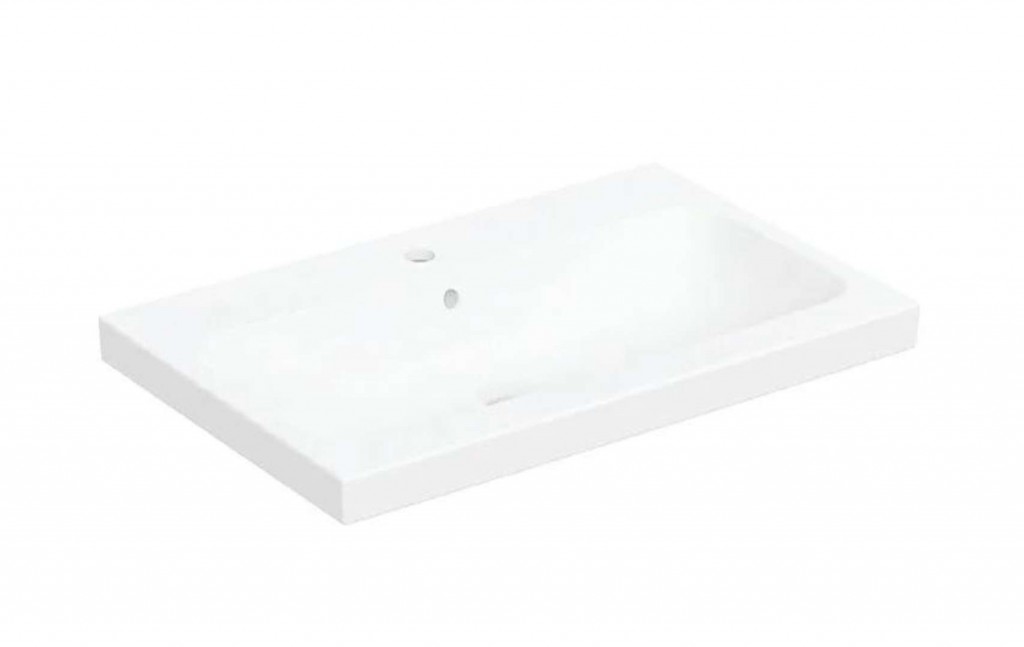 Umyvadlo na desku Geberit iCon Light Barva matná bílá Materiál jemný žáruvzdorný jíl Rozměry 750 x 155 x 480 mm Vnitřní rozměry 680 x 300 mm Pro montáž na desku Kotvení do stěny Broušená spodní a zadní strana Ilustrační foto