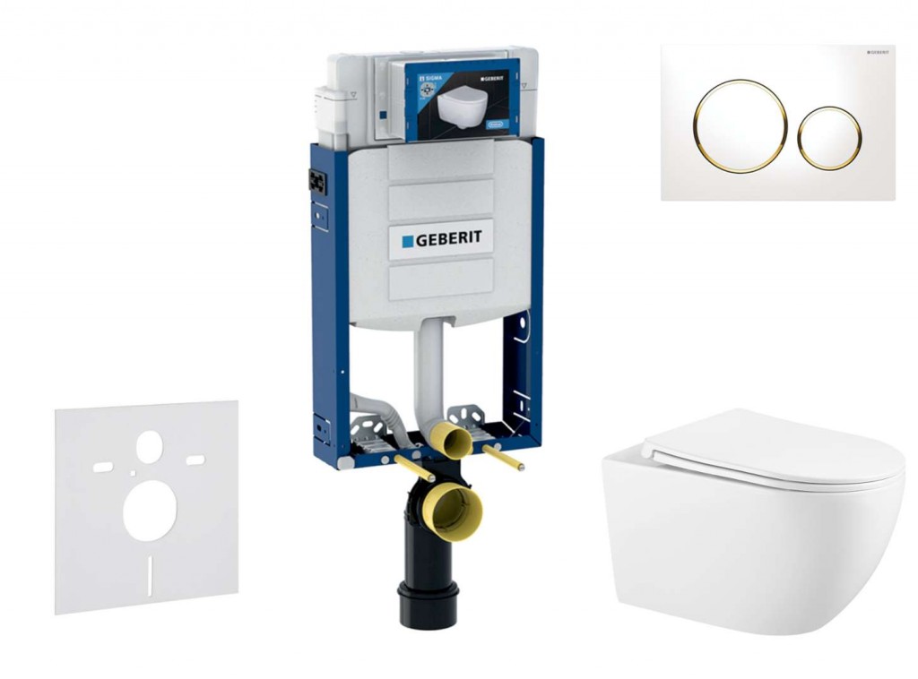 Set obsahuje předstěnový instalační modul Geberit Kombifix se splachovací nádržkou pod omítku keramický závěsný klozet kielle Gaia se sedátkem SoftClose ovládací tlačítko Geberit Sigma20 pro 2-činné splachování soupravu pro tlumení hluku Předstěnový instalační modul Kombifix pro závěsné WC se splachovací nádržkou Sigma 12 cm pro zděné stěny k montáži do předstěnových instalací částečně vysokých nebo vysokých na výšku místnosti pro závěsná WC s připojovacími rozměry podle EN 33:2011 pro 1-činné, 2 -činné nebo Start/Stop splachování Vlastnosti a technické údaje montážní rám s práškovou barvou a se čtyřmi upevňovacími úhelníky připojovací koleno k montáži bez nářadí upevnění připojovacího kolena lze instalovat zepředu bez nářadí splachovací nádržka pod omítku s ovládáním zepředu, izolovaná proti orosování u nastavení z výroby je možné okamžité dodatečné spláchnutí montážní a servisní práce na splachovací nádržce pod omítku bez nářadí přívod vody vzadu nebo nahoře uprostřed kryt pro hrubou montáž pro servisní otvor chrání před vlhkostí a nečistotami, s možností zkrácení vybaven trubkovou chráničkou pro přívodní potrubí k připojení sprchovacích WC Geberit AquaClean s možností upevnění pro přívod elektřiny tlak při průtoku: 10-1000 kPa maximální teplota vody: 25 °C splachovací množství, nastavení ve výrobě: 6 a 3 l velké splachovací množství, rozsah nastavení: 4.5 / 6 / 7.5 l malé splachovací množství, rozsah nastavení: 3-4 l Rozsah dodávky přívod vody R 1/2", vhodný pro MF, s integrovaným rohovým ventilem a ručním ovládacím kolečkem kryt pro hrubou montáž pro servisní otvor připojovací souprava pro WC, Ø 90 mm připojovací koleno Ø 90 / 110 mm 2 ochranné zátky 2 závitové tyče M12 upevňovací materiál Závěsné WC Gaia barva: bílá rozměry: 360 x 525 mm Rimless bezokrajové provedení skryté upevnění hluboké splachování splachovací objem 4/6 l WC sedátko barva: bílá s funkcí pomalého sklápění SoftClose lehce odnímatelné pro snadnou údržbu Dvojčinné ovládací tlačítko Sigma20 rozměry: 246 x 164 x 15 mm materiál: plast provedení: bílá, designové kroužky: pozlacená k ovládání splachování nádržek pod omítku Geberit Sigma manuální ovládání zepředu, ovládací síla: < 20 N úsporné 2-činné splachování Rozsah dodávky upevňovací rámeček sada připojovacích tyček tlačítka - zvukově izolované, rychlé nastavení bez použití nářadí 2 stavitelné úchytky Protihluková sada pro závěsné WC nebo závěsný bidet pro montáž keramiky se vzdáleností upevnění 18 cm nebo 23 cm přerušuje přenos hluku u WC a bidetu materiál: polyetylén-pěna obsahuje: 1x zvukově izolační vložku, 2x podložku