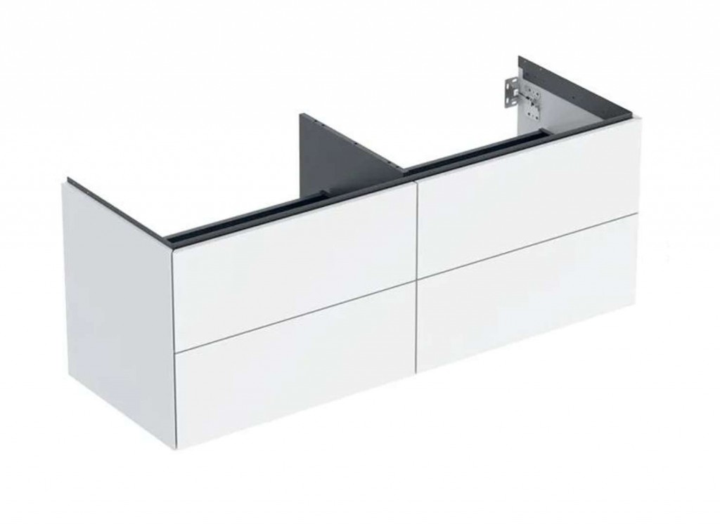 Skříňka pro umyvadlo na desku se dvěma zásuvkami Barva: bílá / lakované s vysokým leskem Materiál: vysoce komprimovaná třívrstvá dřevotřísková deska Rozměry: 1332 x 504 x 470 mm Šířka umyvadel 50 cm Závěsná Plně využitelný úložný prostor v horní zásuvce Se čtyřmi zásuvkami Otevírání pomocí mechanismu push-to-open Zásuvka s tichým dovíráním Ochrana proti vlhkosti Nosnost zásuvky max. 30 kg Dodáváno smontované Upevňovací materiál v balení Pro instalaci skříňky pod umyvadlo je zapotřebí umyvadlová přepadová souprava Geberit, prostorově úsporná Ilustrační foto