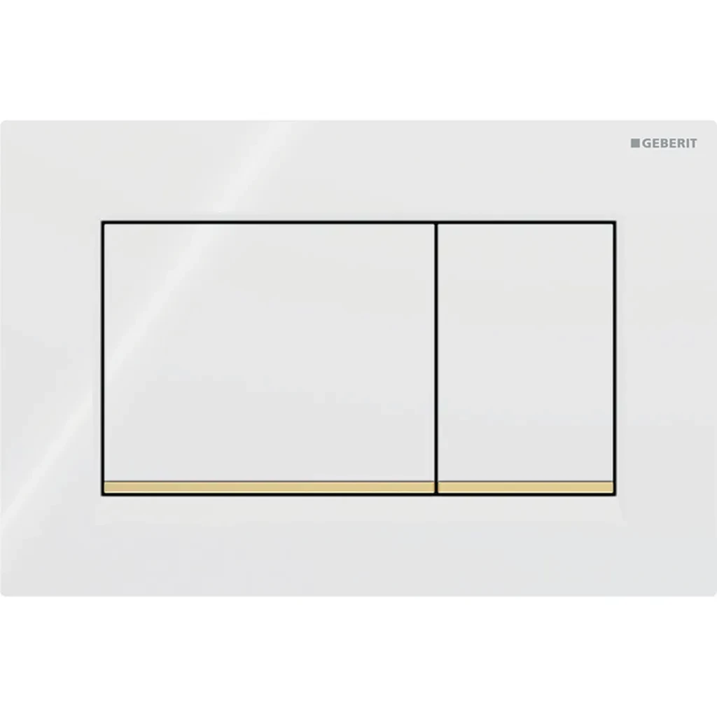 Geberit ovládací tlačítko SIGMA 30 bílá proužky bílá mat plastová Geberit Sigma30 Ovládací Tlačítko pro Dvojité Splachování Účel Použití: Určeno pro spuštění splachování u podomítkových splachovacích nádržek Sigma. Vlastnosti: Ovládání zepředu. Snadná instalace bez nářadí díky zvukově izolovaným tyčkám tlačítka. Rozsah Dodávky: Upevňovací rámeček. 2 stavitelné úchytky. 2 tyčky tlačítka. Technické Údaje: Maximální ovládací síla: 20 N. Varianty: Bílá s bílými matnými designovými proužky. Bílá s povrchovou úpravou easy-to-clean a bílými designovými proužky. Černá s povrchovou úpravou easy-to-clean a pochromovaným lesklým proužkem. Černá s povrchovou úpravou easy-to-clean a černými designovými proužky. Černá s černými matnými designovými proužky. Lakovaná s matným pochromováním a pochromovaným lesklým proužkem. Bílá s povrchovou úpravou easy-to-clean a pochromovaným lesklým proužkem. Pochromovaná lesklá s pochromovaným matným proužkem. Bílá s pochromovaným lesklým proužkem. Bílá s pozlaceným proužkem. Černá s pochromovaným lesklým proužkem. Příslušenství: Dávkovač pro tyčinku Geberit DuoFresh pro podomítkové nádržky Sigma (8 cm a 12 cm). Prodlužovací souprava pro splachovací nádržky Sigma, Omega a Kappa. Jednotka odsávání zápachu Geberit DuoFresh s automatickým nebo manuálním spouštěním odsávání a dávkovačem pro tyčinku Geberit DuoFresh (8 cm a 12 cm).