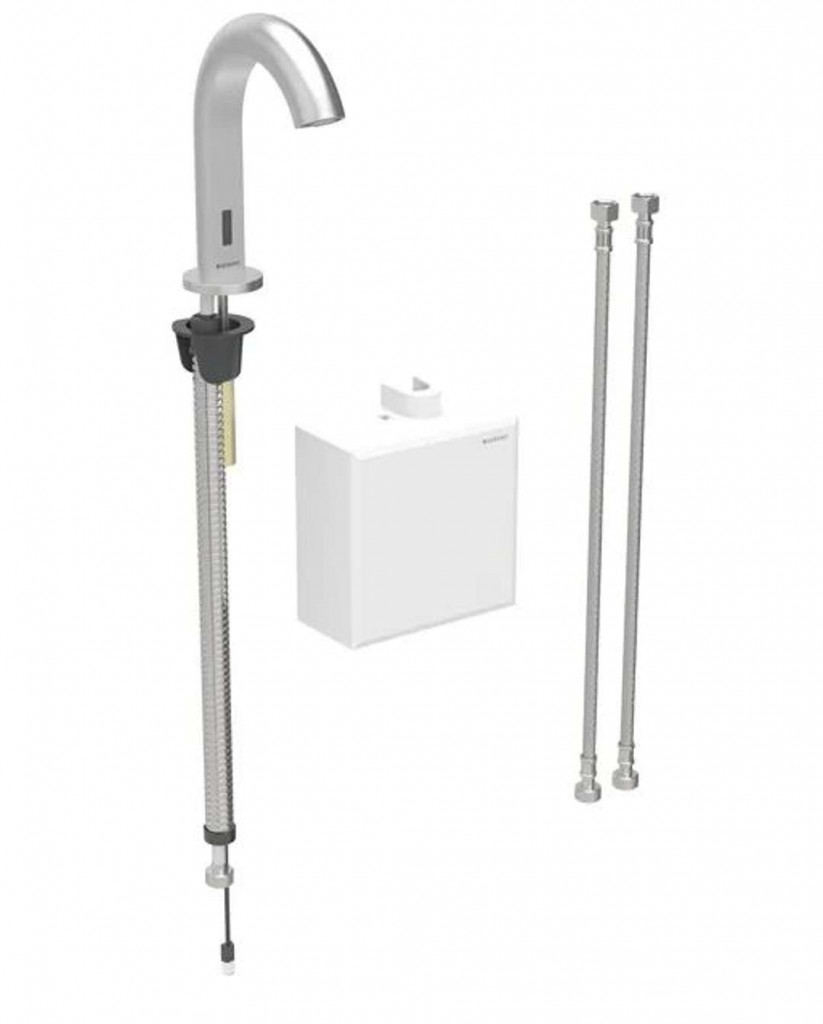 Umyvadlová armatura Geberit Piave Barva kartáčovaná nerez Materiál mosaz / plast K odběru pitné vody Pro připojení studené, teplé a smíchané vody Pro veřejný a poloveřejný sektor Pro montáž do umyvadla nebo panelů s umyvadlem Pro použití s nerezovými dřezy Pro průtok > 3 l/min Model bez směšovače vhodný pro kombinaci s průtokovým ohřívačem, viz technický list „Umyvadlové armatury s průtokovými ohřívači“ Skupina armatur I podle DIN 4109 Automatické spuštění vody Nastavení teploty přes směšovač Voda nastavitelná jako ne pouze teplá nebo ne pouze studená Infračervené čidlo pro zaznamenání uživatele Odolný proti vandalům Povrch ošetřen vrstvou easy-to-clean Napájení elektrickým proudem z generátoru a akumulátoru Výstraha při nízkém stavu nabití akumulátoru Ekonomický režim provozu nastavitelný Úspora vody díky dvoupaprskové snímací technice s rychlou reakcí Funkce je možné servisním dálkovým ovládáním nastavit a dotazovat Nastavení přístroje a obsluha s mobilním zařízením přes integrované rozhraní Bluetooth Kompatibilní s aplikací Geberit Control App Bezdrátově spojený k síti s Geberit Gateway přes Bluetooth Kompatibilní s Geberit Connect Program úspora vody nastavitelný Program intervalu propláchnutí nastavitelný Trvalé propláchnutí individuálně nastavitelné Se zabudovaným zpětným ventilem Funkční jednotka se zabudovanými košíkovými filtry Technické parametry: Druh ochrany IPX4 Provozní napětí 3,2 V DC Provozní tlak 200 – 1000 kPa Zkušební tlak vody max. 1 600 kPa Zkušební tlak vzduch / inertní plyn max. 300 kPa Teplota okolí 1 – 40 °C Teplota skladování -20 – +70 °C Teplota vody max. 60 °C Teplota vody krátkodobě max. 90 °C Průtok při tlaku 3 bar 5 l/min Minimální přetlak 200 kPa Výpočtový průtok 0,07 l/s Intervalové splachování, rozsah nastavení 1 – 168 h Intervalové splachování, nastavení ve výrobě 24 h Intervalová doba proplachování, rozsah nastavení 5 – 200 s Intervalová doba proplachování, nastavení ve výrobě 5 s Výška: 193 mm Délka výtoku: 167 mm Komfortní zóna: 133 mm Rozsah dodávky: Umyvadlová armatura s infračerveným senzorem a hadicí pro přívod vody Funkční box na omítku s řídicí elektronikou, funkční jednotkou a akumulátorem pro provoz generátoru Pancéřové hadičky 3/8" Klíč pro usměrňovač proudu vody Upevňovací materiál Ilustrační foto