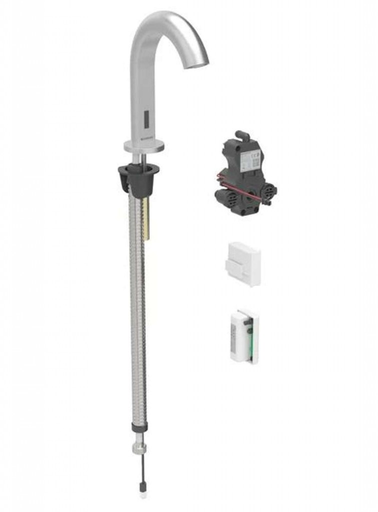 Elektronická umyvadlová armatura Piave se směšovačem, pro funkční box pod omítku Barva kartáčovaná nerez Materiál mosaz pochromovaná/plast K odběru pitné vody Pro veřejný a poloveřejný sektor Pro montáž do umyvadla nebo panelů s umyvadlem K montáži do instalačních prvků Geberit pro umyvadlo, stojánková armatura s funkčním boxem pod omítku K montáži do souprav pro hrubou montáž k umyvadlovým armaturám Geberit, stojánkové, s funkčním boxem pod omítku Pro připojení studené a teplé vody Pro použití s nerezovými dřezy Pro průtok > 3 l/min Provedení se směšovačem není určeno pro průtokový ohřívač Skupina armatur I podle DIN 4109 Automatické spuštění vody Infračervené čidlo pro zaznamenání uživatele Infračervený senzor samonastavitelný Odolný proti vandalům Omezení průtoku usměrňovačem proudu vody Nastavení teploty přes směšovač Voda nastavitelná jako ne pouze teplá nebo ne pouze studená Napájení elektrickým proudem z generátoru a akumulátoru Napájení elektrickým proudem nezávislé Výstraha při nízkém stavu nabití akumulátoru Ekonomický režim provozu nastavitelný Úspora vody díky dvouproudové snímací technice s rychlou reakcí Funkce je možné servisním dálkovým ovládáním nastavit a dotazovat Program úspora vody nastavitelný Program intervalu propláchnutí nastavitelný Trvalé propláchnutí individuálně nastavitelné Ovládání spouštění deaktivovatelné pomocí ovládání pro údržbu Geberit Různé funkce ručně nastavitelné Se zabudovaným zpětným ventilem Funkční jednotka se zabudovanými košíkovými filtry Technické údaje Druh ochrany: IPX4 Provozní napětí: 3,2 V DC Provozní tlak: 200 - 1000 kPa Rozdíl tlaku studená/teplá voda: ≤ 150 kPa Maximální zkušební tlak vody: 1 600 kPa Maximální zkušební tlak vzduchu/inertního plynu: 300 kPa Teplota okolí: 1 – 40 °C Teplota skladování: -20 – +70 °C Maximální teplota vody: 60 °C Maximální teplota vody, krátkodobá: 90 °C Průtok při tlaku 3 bar: 5 l/min Výpočtový průtok: 0,07 l/s Minimální přetlak pro výpočtový průtok: 200 kPa Interval proplachu, rozsah nastavení: 1 - 168 h Interval spláchnutí, nastavení ve výrobě: 24 h Interval proplachu, rozsah nastavení: 5 - 200 s Interval spláchnutí, nastavení ve výrobě: 5 s Délka výtoku: 167 mm Výška baterie: 193 mm Komfortní zóna: 133 mm Obsah dodávky Umyvadlová armatura s infračerveným senzorem a hadicí pro přívod vody Řídicí elektronika Funkční jednotka Akumulátor pro provoz generátoru Klíč pro usměrňovač proudu vody Upevňovací materiál Ilustrační foto