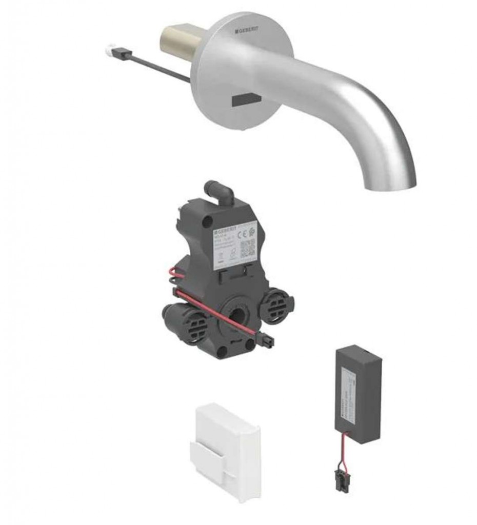 Elektronická umyvadlová armatura Piave bez směšovače, pro funkční box pod omítku Barva kartáčovaná nerez Materiál mosaz pochromovaná /plast K odběru pitné vody Pro veřejný a poloveřejný sektor K montáži do instalačních prvků Geberit pro umyvadlo, nástěnná armatura s funkčním boxem pod omítku Pro připojení studené a smíchané vody Pro použití s nerezovými dřezy Nanesená vrstva easy-to-clean Provedení se směšovačem není určeno pro průtokový ohřívač Pro tloušťky opláštění 10 – 50 mm Skupina armatur I podle DIN 4109 Automatické spuštění vody Samonastavitelné infračervené čidlo pro zaznamenání uživatele Odolný proti vandalům Omezení průtoku usměrňovačem proudu vody Napájení z baterie Výstraha v případě slabé baterie Ekonomický režim provozu nastavitelný Úspora vody díky dvouproudové snímací technice s rychlou reakcí Funkce je možné servisním dálkovým ovládáním nastavit a dotazovat Program úspora vody nastavitelný Program intervalu propláchnutí nastavitelný Trvalé propláchnutí individuálně nastavitelné Ovládání spouštění deaktivovatelné pomocí ovládání pro údržbu Geberit Různé funkce ručně nastavitelné Se zabudovaným zpětným ventilem Funkční jednotka se zabudovanými košíkovými filtry Technické údaje Typ baterie: Alkalická baterie (1,5 VAA) Druh ochrany: IPX4 Provozní napětí: 3 V DC Provozní tlak: 50 - 1000 kPa Rozdíl tlaku studená/teplá voda: ≤ 150 kPa Maximální zkušební tlak vody: 1 600 kPa Maximální zkušební tlak vzduchu /inertního plynu: 300 kPa Teplota okolí: 1 – 40 °C Teplota skladování: -20 – +70 °C Maximální teplota vody: 60 °C Maximální teplota vody, krátkodobá: 90 °C Průtok při tlaku 3 bar: 5 l/min Výpočtový průtok: 0,07 l/s Minimální přetlak pro výpočtový průtok: 50 kPa Interval proplachu, rozsah nastavení: 1 - 168 h Interval spláchnutí, nastavení ve výrobě: 24 h Interval proplachu, rozsah nastavení: 5 - 200 s Interval spláchnutí, nastavení ve výrobě: 5 s Délka výtoku: 183 mm Obsah dodávky Umyvadlová armatura Infračervený senzor s připojovacím kabelem Řídicí elektronika Funkční jednotka Pouzdro na baterie 2 alkalické manganové baterie typu AA, 1,5 V Klíč pro usměrňovač proudu vody Upevňovací materiál Ilustrační foto