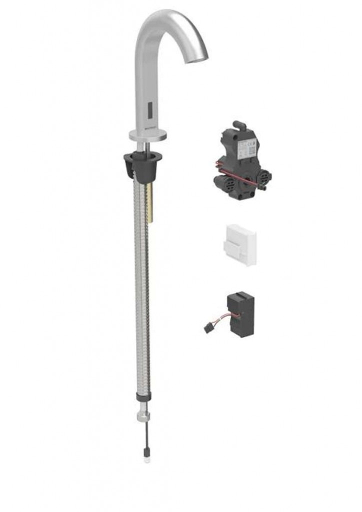 Elektronická umyvadlová armatura Piave bez směšovače, pro funkční box pod omítku Barva kartáčovaná nerez Materiál mosaz pochromovaná/plast K odběru pitné vody Pro veřejný a poloveřejný sektor Pro montáž do umyvadla nebo panelů s umyvadlem K montáži do instalačních prvků Geberit pro umyvadlo, stojánková armatura s funkčním boxem pod omítku K montáži do souprav pro hrubou montáž k umyvadlovým armaturám Geberit, stojánkové, s funkčním boxem pod omítku Pro použití s nerezovými dřezy Nanesená vrstva easy-to-clean Skupina armatur I podle DIN 4109 Automatické spuštění vody Samonastavitelný infračervené čidlo pro zaznamenání uživatele Odolný proti vandalům Omezení průtoku usměrňovačem proudu vody Napájení pomocí síťového zdroje Ekonomický režim provozu nastavitelný Úspora vody díky dvouproudové snímací technice s rychlou reakcí Funkce je možné servisním dálkovým ovládáním nastavit a dotazovat Program úspora vody nastavitelný Program intervalu propláchnutí nastavitelný Trvalé propláchnutí individuálně nastavitelné Ovládání spouštění deaktivovatelné pomocí ovládání pro údržbu Geberit Různé funkce ručně nastavitelné Se zabudovaným zpětným ventilem Funkční jednotka se zabudovanými košíkovými filtry Technické údaje Druh ochrany: IPX4 Jmenovité napětí: 110 - 240 V AC Síťová frekvence: 50 - 60 Hz Provozní napětí: 4,5 V DC Příkon: 0,1 W Provozní tlak: 50 - 1 000 kPa Rozdíl tlaku studená/teplá voda: ≤ 150 kPa Maximální zkušební tlak vody: 1 600 kPa Maximální zkušební tlak vzduchu/inertního plynu: 300 kPa Teplota okolí: 1 – 40 °C Teplota skladování: -20 – +70 °C Maximální teplota vody: 60 °C Maximální teplota vody, krátkodobá: 90 °C Průtok při tlaku 3 bar: 5 l/min Výpočtový průtok: 0,07 l/s Minimální přetlak pro výpočtový průtok: 50 kPa Interval proplachu, rozsah nastavení: 1 - 168 h Interval spláchnutí, nastavení ve výrobě: 24 h Interval proplachu, rozsah nastavení: 5 - 200 s Interval spláchnutí, nastavení ve výrobě: 5 s Délka výtoku: 167 mm Výška baterie: 193 mm Komfortní zóna: 133 mm Obsah dodávky Umyvadlová armatura s infračerveným senzorem a hadicí pro přívod vody Řídicí elektronika Funkční jednotka Síťový zdroj Klíč pro usměrňovač proudu vody Upevňovací materiál Ilustrační foto