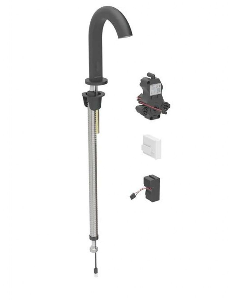 Elektronická umyvadlová armatura Piave bez směšovače, pro funkční box pod omítku Barva matná černá Materiál mosaz pochromovaná/plast K odběru pitné vody Pro veřejný a poloveřejný sektor Pro montáž do umyvadla nebo panelů s umyvadlem K montáži do instalačních prvků Geberit pro umyvadlo, stojánková armatura s funkčním boxem pod omítku K montáži do souprav pro hrubou montáž k umyvadlovým armaturám Geberit, stojánkové, s funkčním boxem pod omítku Pro použití s nerezovými dřezy Nanesená vrstva easy-to-clean Skupina armatur I podle DIN 4109 Automatické spuštění vody Samonastavitelný infračervené čidlo pro zaznamenání uživatele Odolný proti vandalům Omezení průtoku usměrňovačem proudu vody Napájení pomocí síťového zdroje Ekonomický režim provozu nastavitelný Úspora vody díky dvouproudové snímací technice s rychlou reakcí Funkce je možné servisním dálkovým ovládáním nastavit a dotazovat Program úspora vody nastavitelný Program intervalu propláchnutí nastavitelný Trvalé propláchnutí individuálně nastavitelné Ovládání spouštění deaktivovatelné pomocí ovládání pro údržbu Geberit Různé funkce ručně nastavitelné Se zabudovaným zpětným ventilem Funkční jednotka se zabudovanými košíkovými filtry Technické údaje Druh ochrany: IPX4 Jmenovité napětí: 110 - 240 V AC Síťová frekvence: 50 - 60 Hz Provozní napětí: 4,5 V DC Příkon: 0,1 W Provozní tlak: 50 - 1 000 kPa Rozdíl tlaku studená/teplá voda: ≤ 150 kPa Maximální zkušební tlak vody: 1 600 kPa Maximální zkušební tlak vzduchu/inertního plynu: 300 kPa Teplota okolí: 1 – 40 °C Teplota skladování: -20 – +70 °C Maximální teplota vody: 60 °C Maximální teplota vody, krátkodobá: 90 °C Průtok při tlaku 3 bar: 5 l/min Výpočtový průtok: 0,07 l/s Minimální přetlak pro výpočtový průtok: 50 kPa Interval proplachu, rozsah nastavení: 1 - 168 h Interval spláchnutí, nastavení ve výrobě: 24 h Interval proplachu, rozsah nastavení: 5 - 200 s Interval spláchnutí, nastavení ve výrobě: 5 s Délka výtoku: 167 mm Výška baterie: 193 mm Komfortní zóna: 133 mm Obsah dodávky Umyvadlová armatura s infračerveným senzorem a hadicí pro přívod vody Řídicí elektronika Funkční jednotka Síťový zdroj Klíč pro usměrňovač proudu vody Upevňovací materiál Ilustrační foto