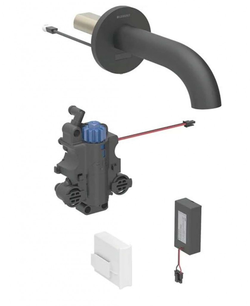 Elektronická umyvadlová baterie Piave s termostatickým směšovačem, pro funkční box pod omítku barva matná černá materiál mosaz / plast k odběru pitné vody pro veřejný a poloveřejný sektor k montáži do instalačních prvků Geberit pro umyvadlo nástěnná armatura s funkčním boxem pod omítku pro připojení studené a teplé vody pro použití s nerezovými dřezy provedení se směšovačem není určeno pro průtokový ohřívač pro tloušťky opláštění 10 – 50 mm napájení z baterie skupina armatur I podle DIN 4109 automatické spuštění vody samonastavitelné infračervené čidlo pro zaznamenání uživatele systém antivandal - odolný proti vandalům omezení průtoku usměrňovačem proudu vody nastavení teploty přes směšovač voda nastavitelná jako ne pouze teplá nebo ne pouze studená ochrana proti opaření omezením teploty na 42°C možnost tepelné dezinfekce dle DVGW W 551 výstraha v případě slabé baterie ekonomický režim provozu nastavitelný úspora vody díky dvouproudové snímací technice s rychlou reakcí funkce je možné servisním dálkovým ovládáním nastavit a dotazovat program úspora vody nastavitelný program intervalu propláchnutí nastavitelný trvalé propláchnutí individuálně nastavitelné ovládání spouštění deaktivovatelné pomocí ovládání pro údržbu Geberit různé funkce ručně nastavitelné se zabudovaným zpětným ventilem funkční jednotka se zabudovanými košíkovými filtry Technické údaje provedení: pochromovaná mosaz materiál: plast délka výtoku: 170 mm typ baterie: Alkalická baterie (2x 1,5 V AA) teplota vody - rozsah nastavení s termostatickým směšovačem 20 - 42 °C druh ochrany: IPX4 maximální teplota vody: 60 °C provozní napětí: 3 V DC maximální teplota vody krátkodobá: 90 °C provozní tlak: 50 - 1000 kPa průtok při tlaku 3 bar: 5 l/min doporučený provozní tlak s termostatickým směšovačem 50 - 500 kPa minimální přetlak pro výpočtový průtok 50 kPa rozdíl tlaku studená/teplá voda: ≤ 150 kPa interval proplachu, rozsah nastavení 1 - 168 h maximální zkušební tlak vody 1 600 kPa interval spláchnutí, nastavení ve výrobě: 24 h maximální zkušební tlak vzduchu / inertního plynu: 300 kPa interval proplachu, rozsah nastavení 5-200 s teplota okolí 1 - 40 °C interval spláchnutí, nastavení ve výrobě 5 s teplota skladování -20 - +70 °C Délka výtoku: 183 mm Obsah dodávky umyvadlová baterie infračervený senzor s připojovacím kabelem řídicí elektronika funkční jednotka pouzdro pro baterii 2 alkalické manganové baterie typu AA, 1,5 V klíč pro usměrňovač proudu vody upevňovací materiál Prvek Geberit pro umyvadlo a krycí deska nejsou součástí dodávky.