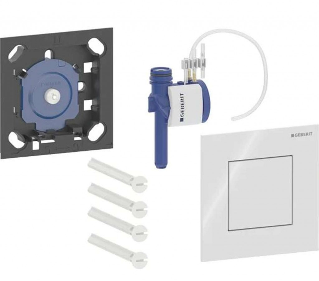 Ovládání splachování pisoáru Geberit, s pneumatickým spuštěním splachování Barva bílá Materiál sklo K ručnímu ovládání splachování pisoárů Pro instalační prvky Geberit pro pisoár s ovládáním zepředu nebo shora K montáži do souprav pro hrubou montáž pro ovládání splachování pisoárů Geberit (od roku výroby 2009) Ovládací tlačítko s pojistnou závorkou Nastavení doby splachování se vzduchovými tryskami (pneumatické) Nízká ovládací síla Malý zdvihový pohyb Aktivace spláchnutí při uvolnění ovládacího tlačítka Splachovací množství lze snížit přes regulační šroub soupravy pro hrubou montáž až na 0,5 l na spláchnutí Skupina armatur II podle DIN 4109 Technické parametry: Tlak při průtoku 100–800 kPa Zkušební tlak vody max. 1600 kPa Zkušební tlak vzduch / inertní plyn max. 300 kPa Teplota vody max. 30 °C Ovládací síla (N) max. 12 N Průtok při tlaku 1 bar bez omezovače průtoku 0.3 l/s Průtok při tlaku 1 bar s omezovačem průtoku 0.18 l/s Minimální přetlak 100 kPa Relativní vlhkost vzduchu ≤ 100 % Výpočtový průtok 0.22 l/s Doba proplachování, rozsah nastavení 4 / 8 / 12 s Tvar tlačítka hranatý Rozsah dodávky: Typ 40 ovládací tlačítko, Square Pneumatické spouštění splachování, předmontované na upevňovacím rámečku Pneumatický ventil Upevňovací materiál Ilustrační foto