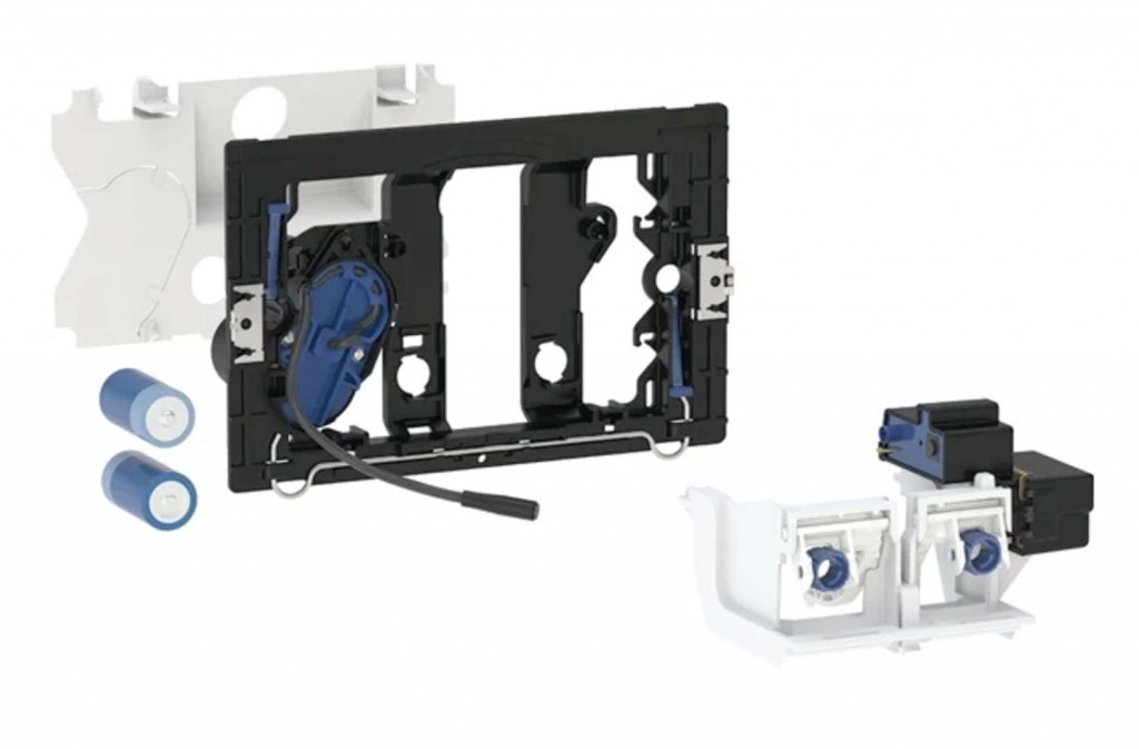 Elektronické ovládání pro splachování WC Účel použití k ručnímu oddálenému ovládání Sigma splachovacích nádržek pod omítku 12 cm přes podpěru s radiovým tlačítkem k ručnímu oddálenému ovládání Sigma splachovacích nádržek pod omítku 12 cm přes radiové tlačítko Geberit ke spuštění 1 nebo 2 množství splachování pro zděné konstrukce a konstrukce prováděné suchým procesem vhodný pro bezbariérové stavby pro Sigma splachovací nádržky pod omítku 12 cm nevhodné pro použití s Geberit dávkovačem desinfekčních tablet Vlastnosti ovládání splachování přes podpěru, bezdrátové, radiové ovládání splachování přes radiové tlačítko Geberit, bezdrátové 2 množství splachování, možnost spouštění přes radiové tlačítko 1 nebo 2 množství splachování s možností spouštění přes ovládací tlačítko lze kombinovat s ovládacími tlačítky Sigma01 až Sigma50 nebo krycími deskami Geberit napájení z baterie baterie v uzavřeném pouzdru pro baterii ve splachovací nádržce s konektory chráněnými proti přepólování interval spláchnutí přednastavený a nastavitelný nastavení přístroje a obsluha s mobilním zařízením přes integrované rozhraní Bluetooth bezdrátově spojený k síti s Geberit Gateway přes Bluetooth kompatibilní s Geberit Connect a aplikací Geberit Control App zvedací mechanismus s nízkou hlučností elektrické zvedací zařízení samokalibrovací Technické údaje typ baterie LR20 druh ochrany IP45 provozní napětí 3 V DC příkon v klidu 0.15 W rádiová frekvence 868.4 MHz rádiový dosah 10 m intervalové splachování, rozsah nastavení 1–168 h intervalové splachování, nastavení ve výrobě 24 h intervalová doba proplachování, rozsah nastavení 1–200 s intervalová doba proplachování, nastavení ve výrobě 5 s materiál plast Rozsah dodávky upevňovací rámeček s pouzdrem pro baterii upevňovací rámeček s infračerveným ovládáním, předinstalovaný ochranná deska držák se servomotorem a zvedacím zařízením, předmontovaný řídicí elektronika s radiovým přijímačem 2 alkalické manganové baterie LR20, každá 1,5 V Nutno objednat zvlášť ovládací tlačítko nebo krycí deska radiové tlačítko