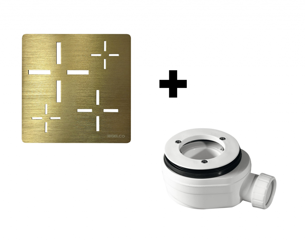 Domů Nábytek Koupelna Sprchy a příslušenství Sprchové vaničky GELCO - SET - Čtvercová krytka sifonu zlatá KSM107G + sifon PB90EXN minus KSM107G-SN90