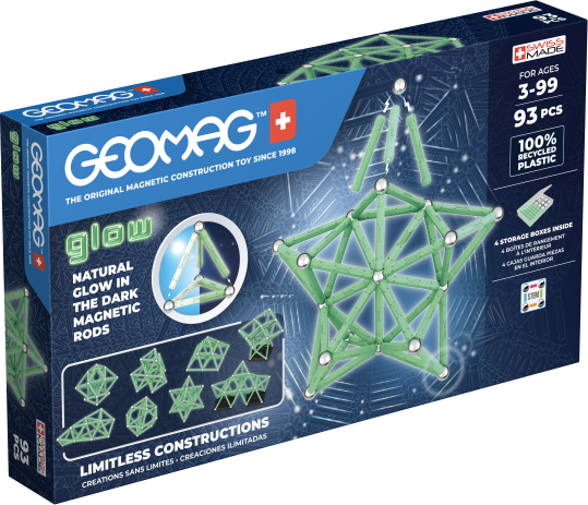 <p>Největší magnetická stavebnice z řady Glow. Potahy tyček po nasvícení září ve tmě. Všechny plastové dílky jsou vyrobeny ze 100% recyklovaného materiálu včetně 4 praktických úložných boxů. Obsahuje 44 magnetických tyček, 44 ocelových kuliček, 2 čtvercové podstavce a 2 pětiúhelníkové podstavce. Vhodné od 3 let.</p>