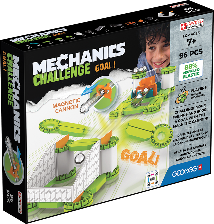 Sestav dráhu, nabij, zamiř a vystřel! Akční hra a stavebnice v jednom, která tě zavede do světa plného zábavy, kde jsou hlavními hrdiny rychlost, magnetismus a gravitace. Všechny barevné plastové části stavebnice jsou z recyklovaného plastu. Stavebnice je určena pro děti od 7 let a je pro 1 – 2 hráče.