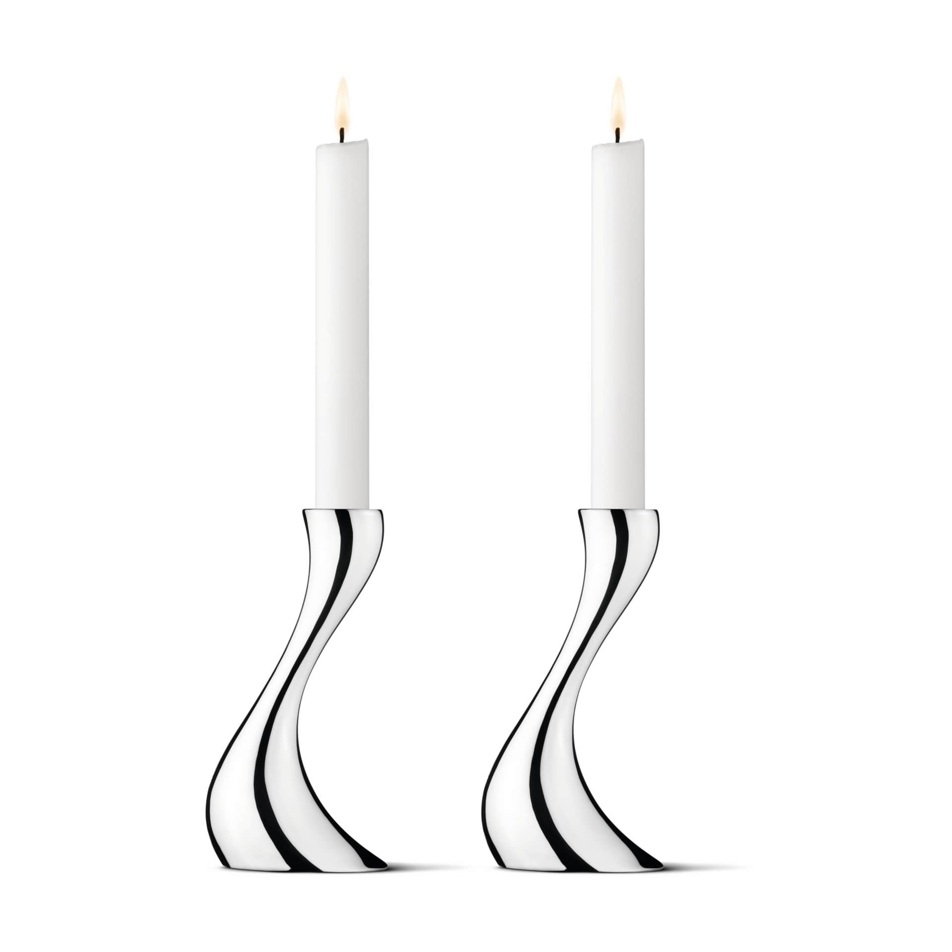 Georg Jensen Svícen Cobra Mirror 16 cm – set 2 ks, stříbrná barva, kov. Přineste do svého interiéru dynamiku a eleganci se svícny Cobra od značky Georg Jensen. Tento set dvou svícnů, navržený německým designérem Constantinem Wortmannem, kombinuje minimalistickou eleganci s jemnou hrou tvaru a světla. Díky zrcadlově leštěné nerezové oceli svícny odrážejí plamínek svíčky a vytvářejí okouzlující hru světla a stínu, zatímco jejich fluidní, smyslné linie evokují pohyb samotného ohně.