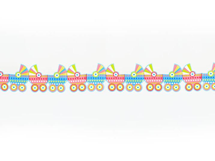 Girlanda - kočárky 300cm Závěsné girlandy narozeninové i tematické … málokterá závěsná dekorace je pro své rychlé použití tak oblíbená jako girlanda. Stačí zavěsit oba konce girlandy do určitého prostoru a každému příchozímu je jasné, že oslava je právě zde. Girlandy mohou být tematické, narozeninové. Girlanda s kočárky papírová 300cm.
