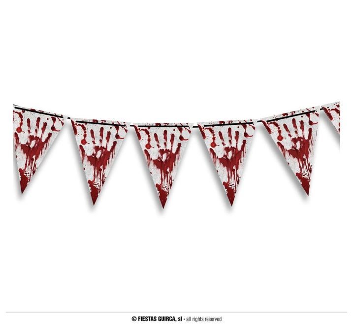 Girlanda krvavé otisky 300cm Vlaječková girlanda Halloween s krvavými otisky je vhodná pro výzdobu místnosti na halloweenský večer. Skvěle doplní tu správnou halloweenskou atmosféru. Vlajky jsou oboustranné Počet vlajek:10 Délka: 300cm