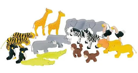 GOKI Dřevěná Africká zvířata 20 ks / od 3 let