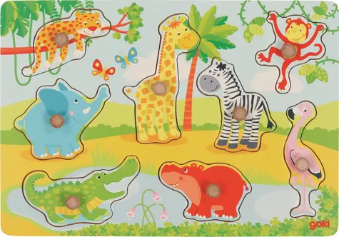 GOKI Dřevěná vkládačka Africká mláďátka