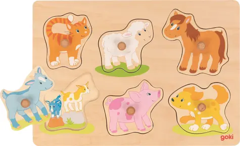 GOKI Dřevěná vkládačka Zvířátka ze statku / od 12 měsíců