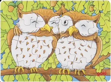 GOKI Dřevěné puzzle Lesní zvířátka: Sovy / 24 dílků / od 4 let