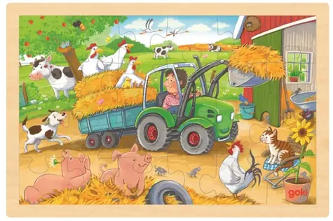 GOKI Dřevěné puzzle Malý traktor / 24 dílků / od 3 let