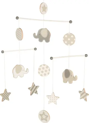 GOKI Dřevěný závěsný kolotoč Sloni a hvězdičky