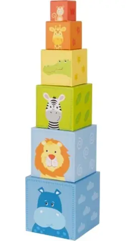 GOKI Skládací věž z kostek Zvířátka / od 12 měsíců