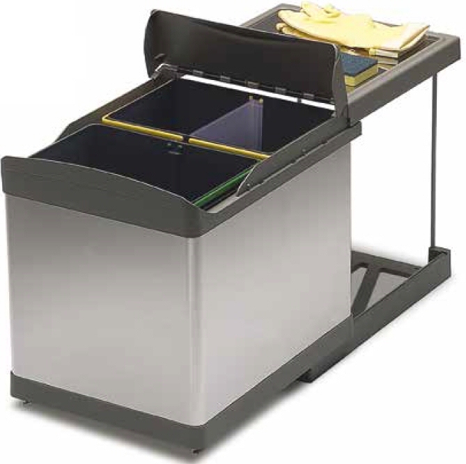 vhodné pro skříňky o vnější šířce korpusu 450mmnerezový povrch Sortery řady Linea 500 nabízí automatické otevření koše při otevření dvířka skříňky.- patentovaný mechanismus Pull-out, pro automatické vysunutí koše-možnost použít i jako obyčejný výsuvný koš bez automatického otevírání- odkládací plocha na krytu koše- snadná montáž (5 minut)objem košů 2x 21lsoučástí zadního koše je dělící příčka pro rozdělení koše na dva dílyrozměr šířka 343mm, hloubka 475mm, výška 433mm