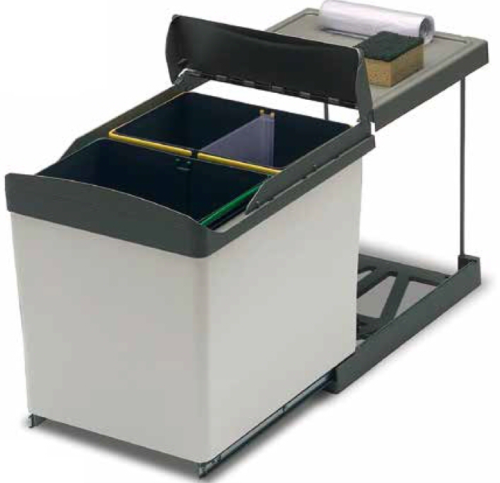 vhodné pro skříňky o vnější šířce korpusu 450mmplastový povrch Sortery řady Linea 500 nabízí automatické otevření koše při otevření dvířka skříňky.- patentovaný mechanismus Pull-out, pro automatické vysunutí koše- možnost použít i jako obyčejný výsuvný koš bez automatického otevírání- odkládací plocha na krytu koše- snadná montáž (5 minut)- objem košů 2x 21lrozměr šířka 343mm, hloubka 475mm, výška 433mm