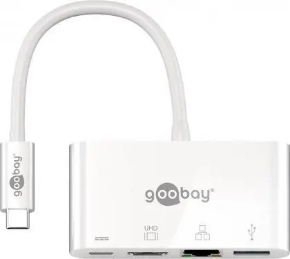 Goobay 62105 multiportový adaptér bílá / 1x USB-C M na HDMI Ethernet USB-C USB-A (4040849621055)