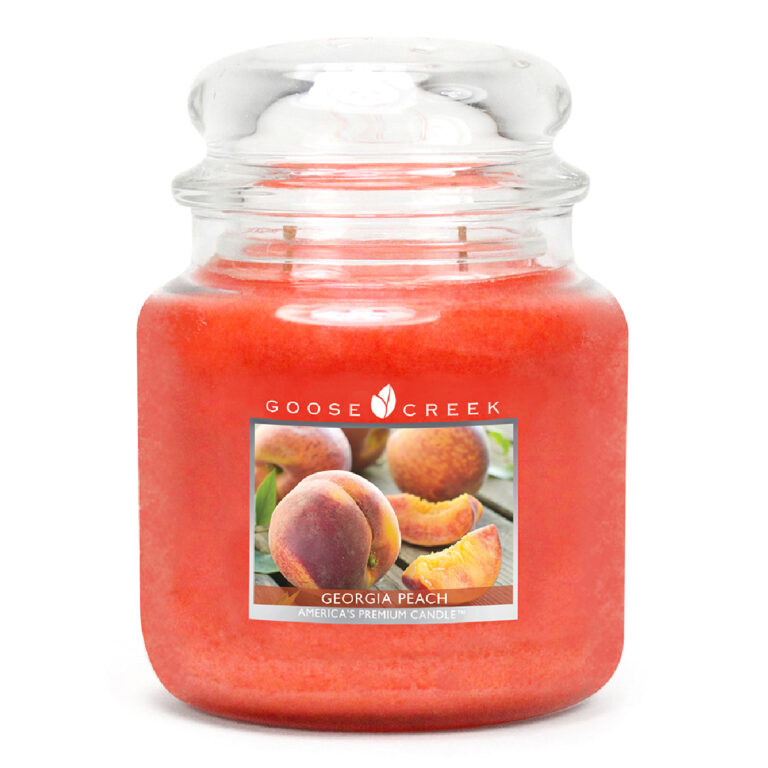 Aroma svíčky GEORGIA PEACH (Broskev) od Goose Creek je čerstvé plné šťavnatého ovoce. Vychutnejte si tóny zralých broskví, růžového grapefruitu, pomerančových plátků, manga a sladkého dřeva. Svěží ovocná vůně dokonale provoní váš interiér, vykouzlí letní atmosféru a podpoří dobrou náladu.Goose Creek je vyrobená z vysoce kvalitního parafínu, který skutečně vydrží vonět. Přináší vám dokonalý vonný zážitek až po dobu 150 hodin. Svíčka obsahuje dva knoty, díky kterým se vytvoří tzv. vonné jezírko a vůně bude dlouhodobě intenzivní.