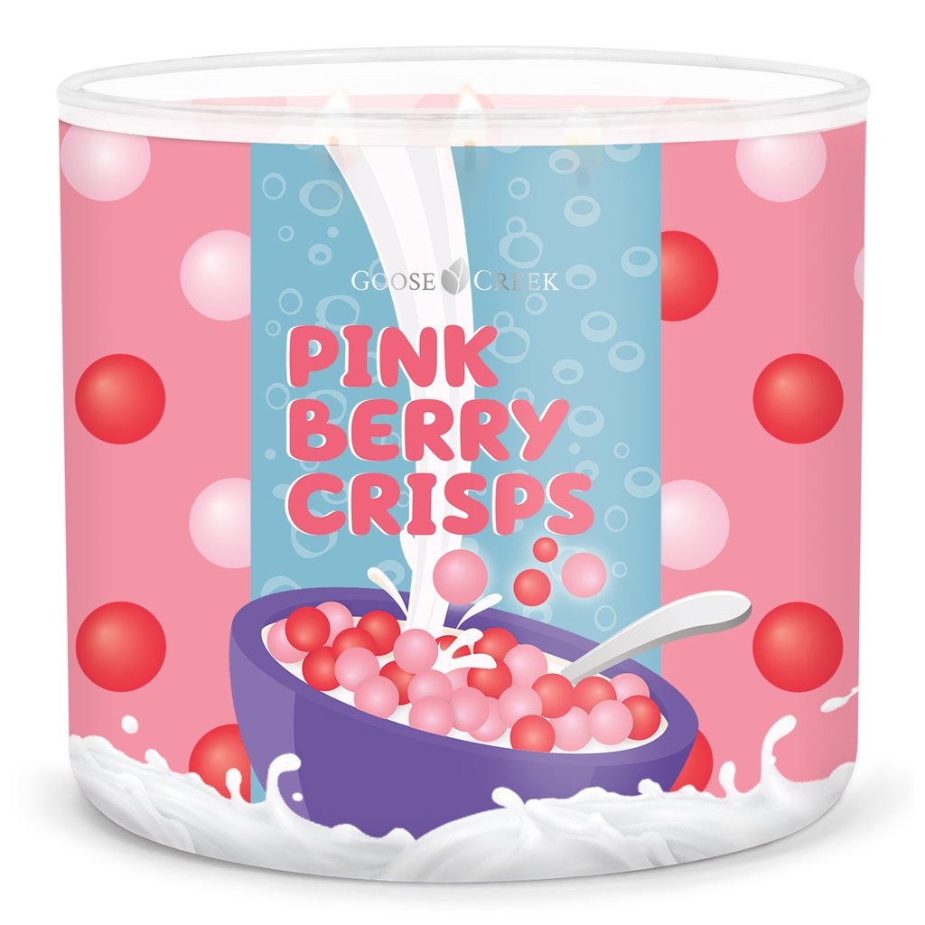 Vonná svíčka Pink Berry Crisps od Goose Creek obsahuje sojový vosk a 3 knoty, které zajišťují čisté hoření a intenzivní provonění interiéru vůní oblíbených