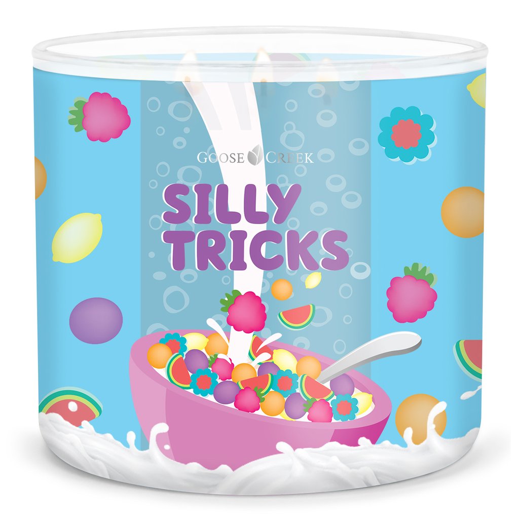 Vonná svíčka Silly Tricks od Goose Creek obsahuje sojový vosk a 3 knoty, které zajišťují čisté hoření a intenzivní provonění interiéru vůní oblíbených