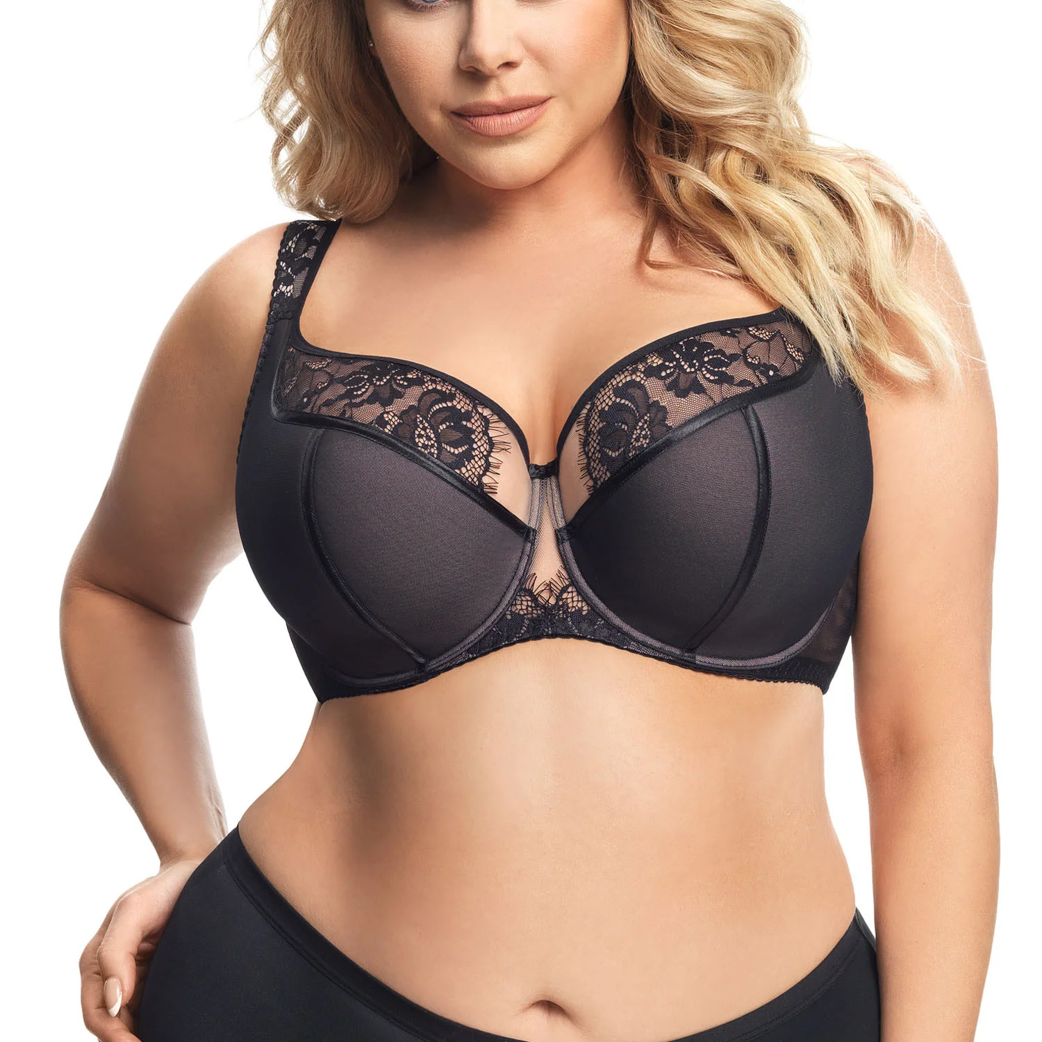 Podprsenka od Gorsenia. Model K647 Alicante. Má dráty, které prsa vhodně tvarují. Svislé velrybí kosti zasazené po stranách. Výrobek má nastavitelné popruhy bez možnosti odepnutí. Kovové háčky na popruh. Podprsenka se zapínáním na háčky a oči. Upevňovací bod: vzadu. Dvě řady svislých háčků. Tři stupně horizontálních háčků. Výrobek je vyroben ze 71 % z polyamidu, 21 % z bavlny a 8 % z elastanu. Výrobek pro ženy.