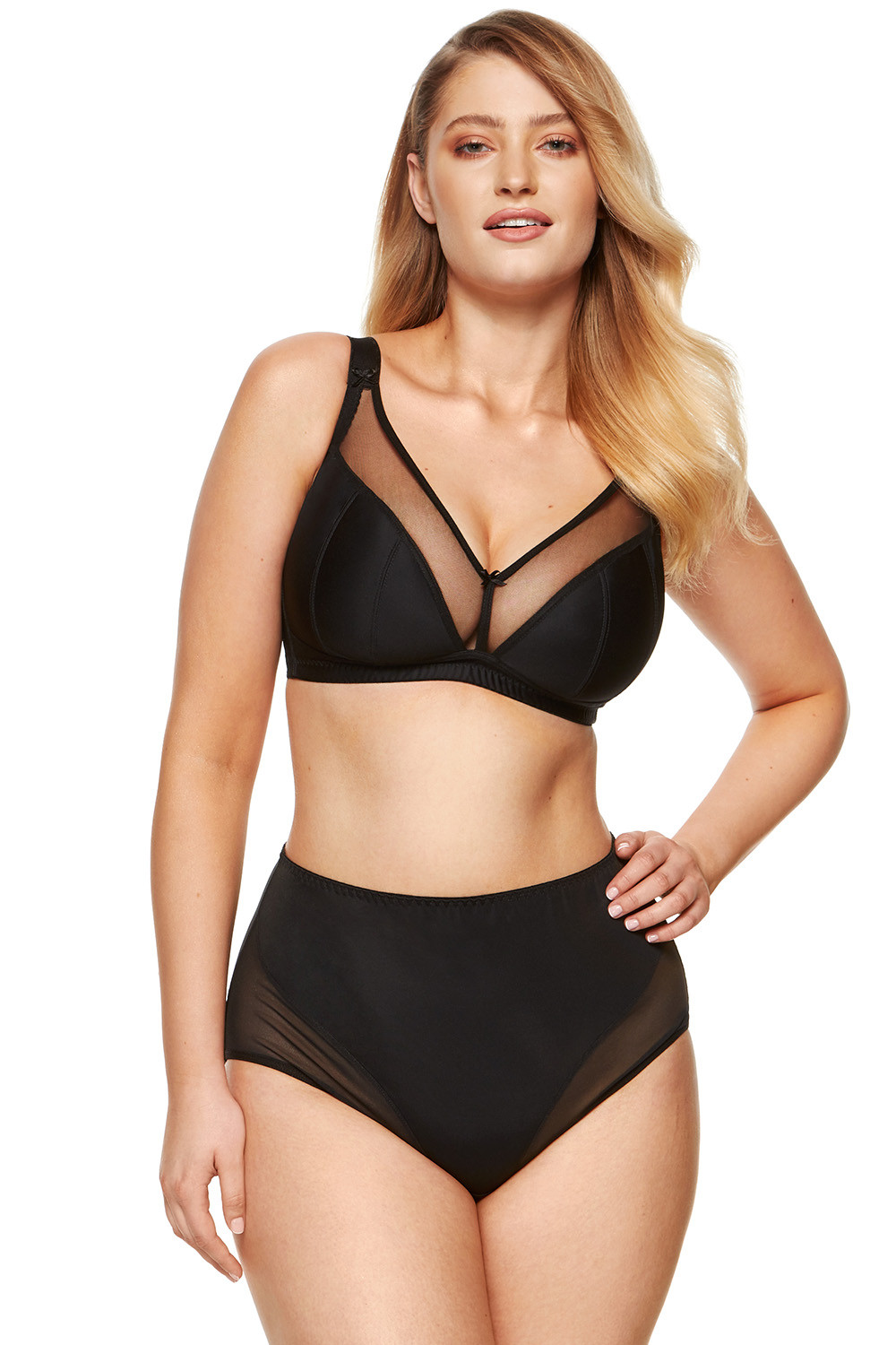 Podprsenka od firmy Gorteks. Model Zara/B2 V1. Svislé velrybí kosti zasazené po stranách. Výrobek má nastavitelné popruhy bez možnosti odepnutí. Kovové háčky na popruh. Upevňovací bod: vzadu. Tři řady svislých háčků. Tři stupně horizontálních háčků. Výrobek je vyroben z 65 % z polyamidu, 20 % z polyesteru, 10 % z bavlny a 5 % z elastanu. Výrobek pro ženy.