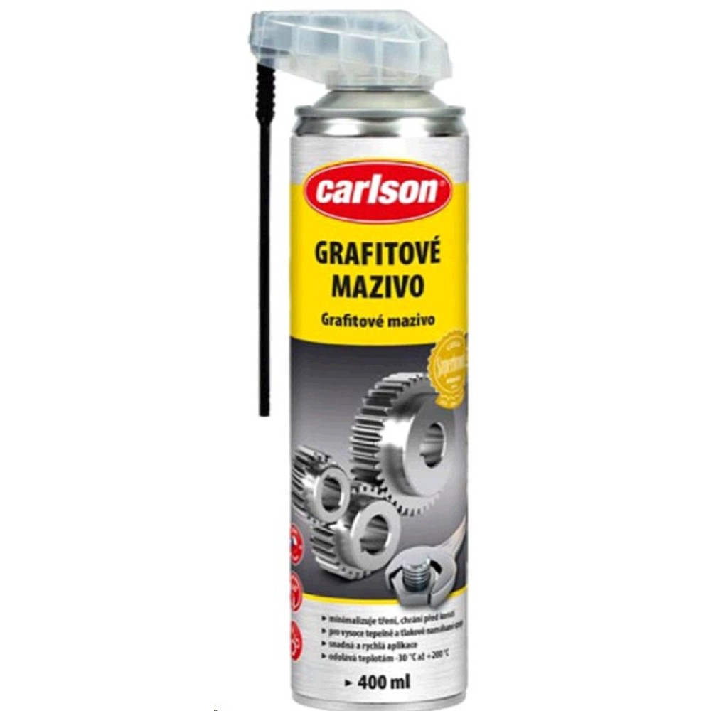 Grafitové mazivo - sprej 400 ml Carlson Pro vysoce tepelně a tlakově namáhané spoje. Minimalizuje tření, chrání před korozí, pro vysoce tepelně a tlakově namáhané spoje, snadná a rychlá aplikace, odolává teplotám -30 °C až +200 °C Před použitím přípravek důkladně protřepejte (alespoň 30 sekund). Mazivo aplikujte na prachu a nečistot zbavený povrch z krátké vzdálenosti. Nechte zaběhnout, aby mazivo vytvořilo rovnoměrný tenký film. V případě potřeby postup opakujte. Vlastnosti: pro vysoce tepelně a tlakově namáhané spoje, odolává teplotám -30 °C až +200 °C, minimalizuje tření, chrání před korozí, snadná a rychlá aplikace. CARLSON® Grafitové mazivo je přípravek určený zejména k mazání vysoce tepelně a tlakově namáhaných součástek. Je vhodné pro mazání automobilových listových per, pružin, převodů a převodovek, závitů, kloubů a dalších součástek vystavených vlivům koroze v automobilovém i strojním průmyslu.