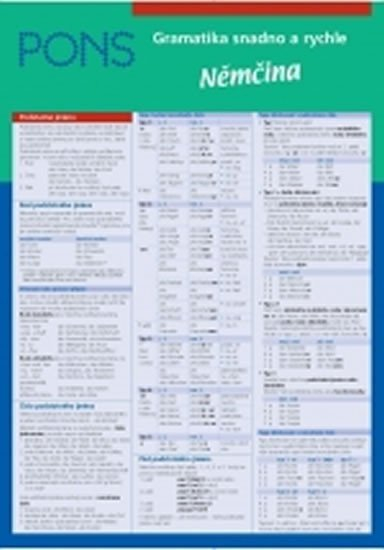 Praktický „tahák“ pro žáky a studenty, do úřadů a institucí, v nichž se hovoří cizími jazyky, pro každého, kdo potřebuje rychle najít informace o základních gramatických jevech. Šestistránková laminovaná a omyvatelná skládačka s jednoduchým a přehledným grafickým řešením, barevně zvýrazněnými výjimkami a příkladovými větami s českými překlady. Tato pomůcka vám poskytne vše důležité o mluvnici i pravopisných zvláštnostech jazyka, který právě studujete. Založte si ji do svých oblíbených pořadačů! Spolu s podobnými materiály edice PONS může vytvořit základ vaší jazykové průpravy.