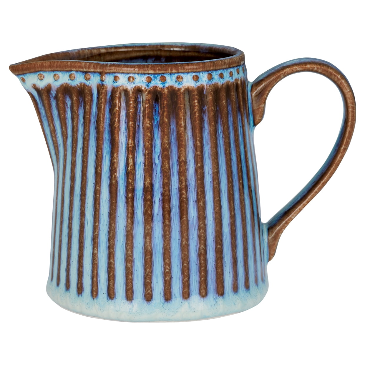 Roztomilý džbánek v podmanivě modrém odstínu s neutrální hnědou je ideální na mléko či smetanu, ale krásně v něm bude vypadat i kytička sněženek.