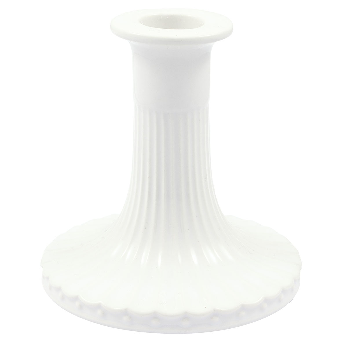 Bílá barva, jemné vroubky a klasický tvar z něj dělají dokonalý doplněk na prostřený stůl, krbovou římsu nebo komodu. Skvěle vynikne v kombinaci s barevnou svíčkou, se kterou vytvoří příjemné zátiší.