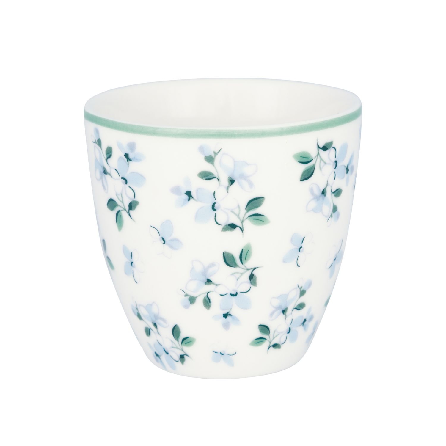GREEN GATE Mini latte cup Alaia White 130 ml, modrá barva, porcelán. Porcelánový mini hrneček bez ouška je ideální na ranní kávu espresso nebo ristretto, která vám dodá energii na celý den. A dětem do něj můžete připravit jejich oblíbené babyccino. Krásný květinový vzor Alaia White bude také ozdobou vaší kuchyně.