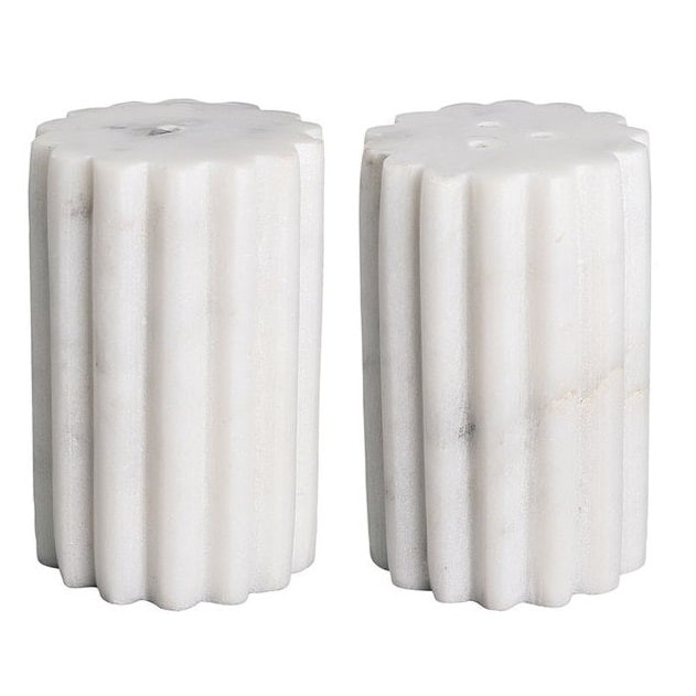 K dochucení pokrmů přijde vhod sada slánky a pepřenky z bílého mramoru, který zaujme svou originální kresbou na každém jednom kuse. Slánku i pepřenku pak definují plastické vroubky, které tak dodávají celku zcela unikátní výraz.