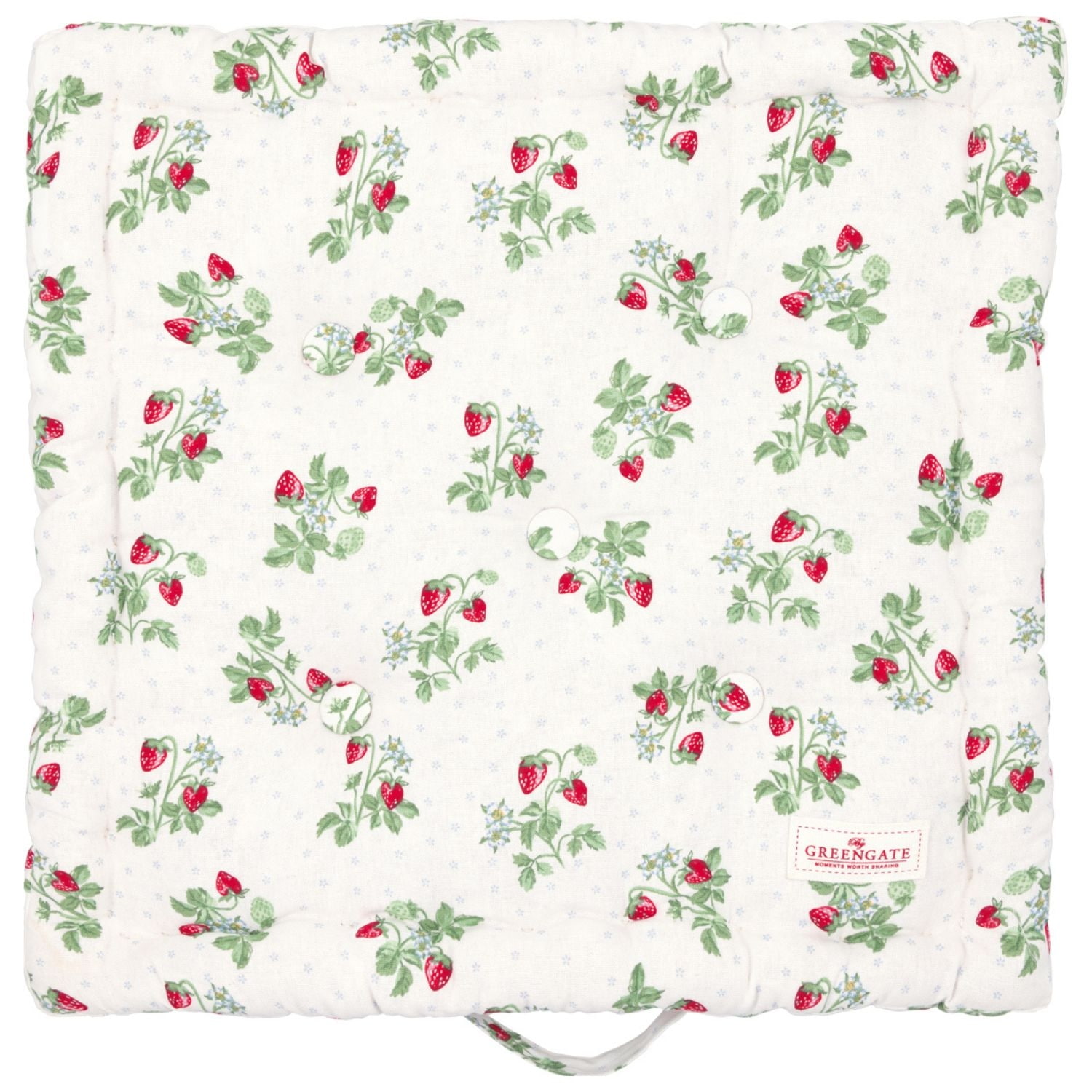 GREEN GATE Prošívaný podsedák Berry White 50 × 50 cm, zelená barva, textil. Každý si rád pohodlně posedí a s tímto sedákem snadno proměníte každou tvrdou židli, nepohodlné křeslo či lavici v měkoučké sezení.