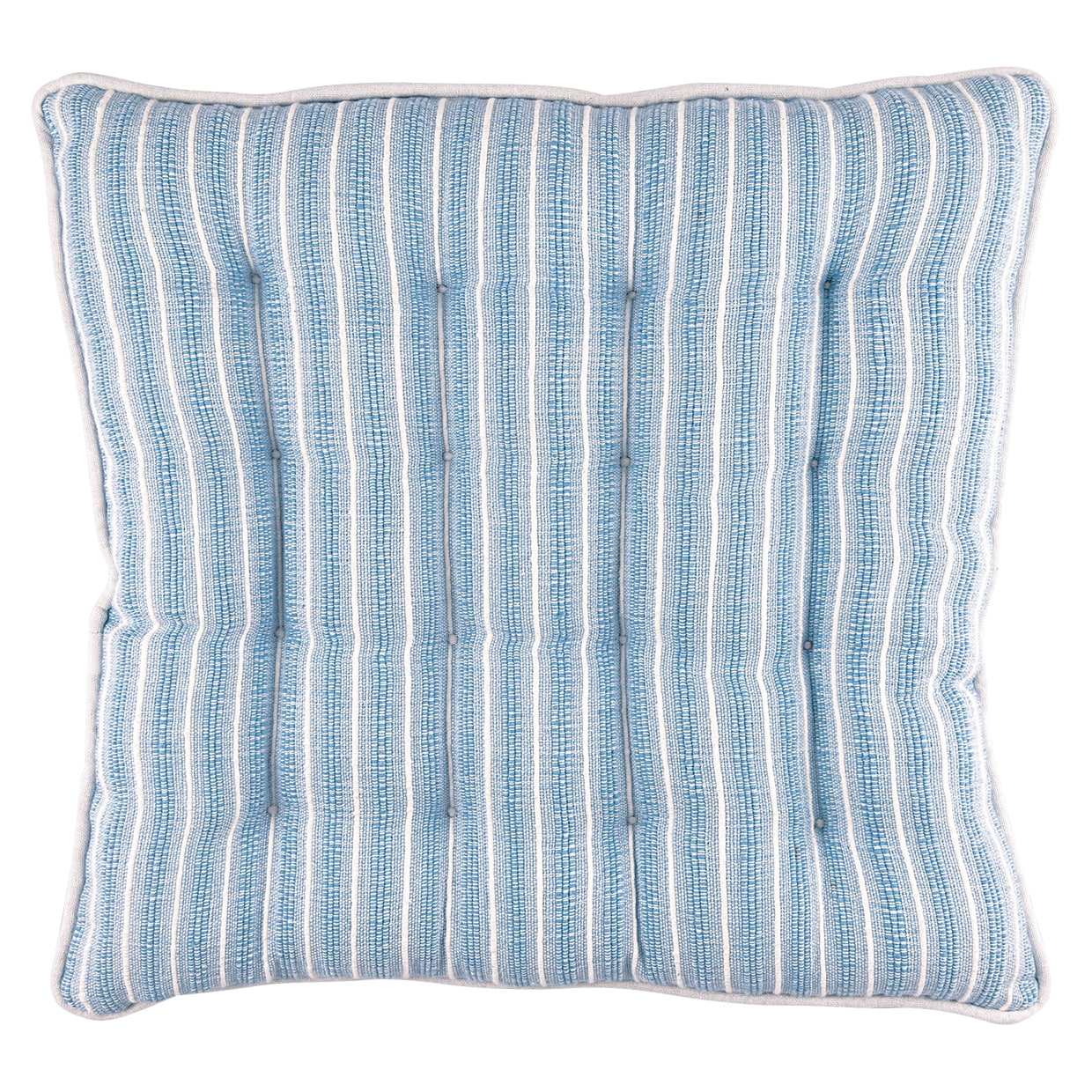 Prošívaný sedák z kolekce Alessia Pale Blue má pruhovaný dekor ve světle modrém provedení a po obvodu je bíle lemován. Jeho bohatá výplň zajišťuje maximální pohodlí. délka 40 cm / šířka 40 cm / výška 4 cm Vyrobeno z certifikované bavlny (100%), výplň polyester (100%).
