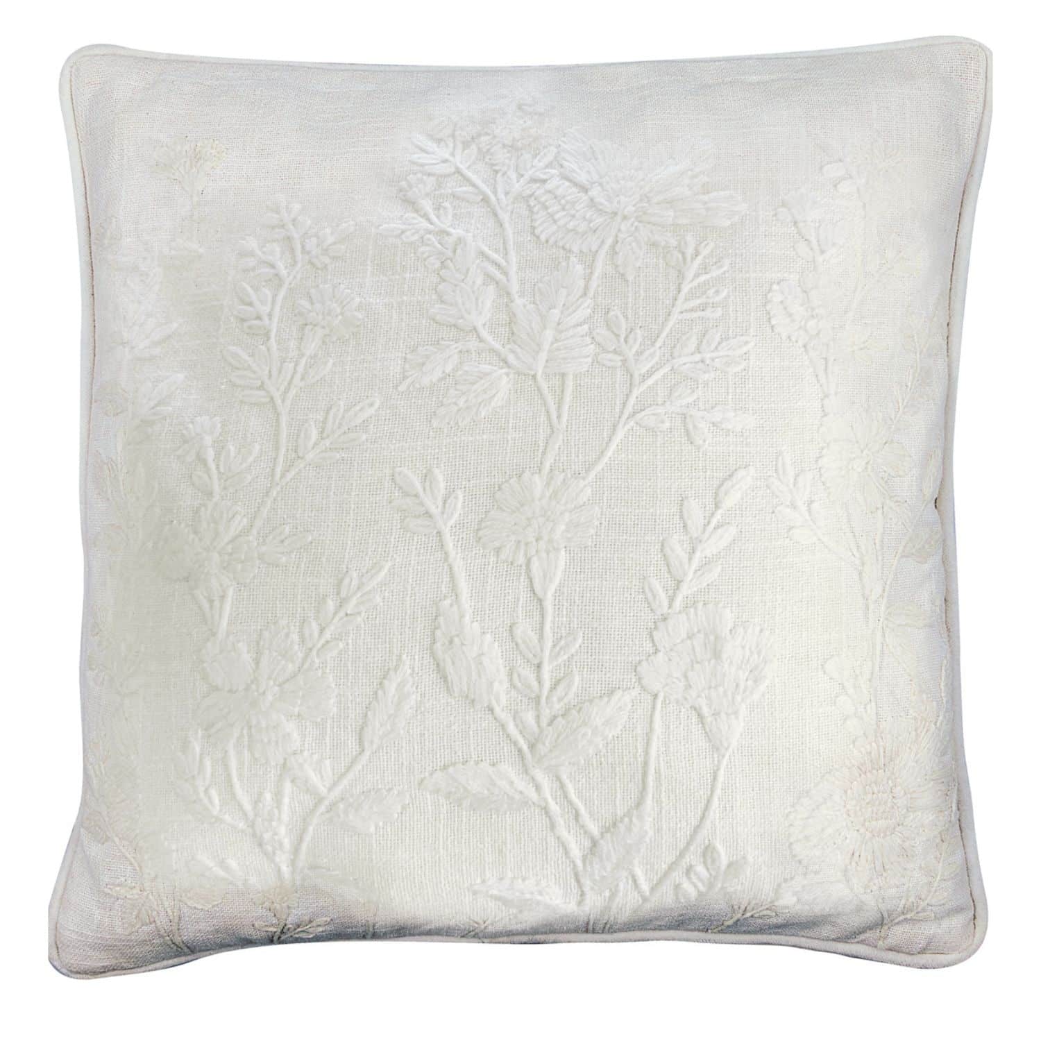 Bílý povlak na polštář zdobí okouzlující vyšívaná květinová aplikace v ladícím bílém odstínu. Bude se tak dobře kombinovat s ostatním textilem v místnosti. Tento krásný polštářek bude nejen něžnou dekorací na sedačce, v křesle nebo na posteli, ale bude se na něm i velmi příjemně odpočívat. šířka 40 cm / délka 40 cm Vyrobeno ze 100% bavlny s certifikací OEKO-TEX.