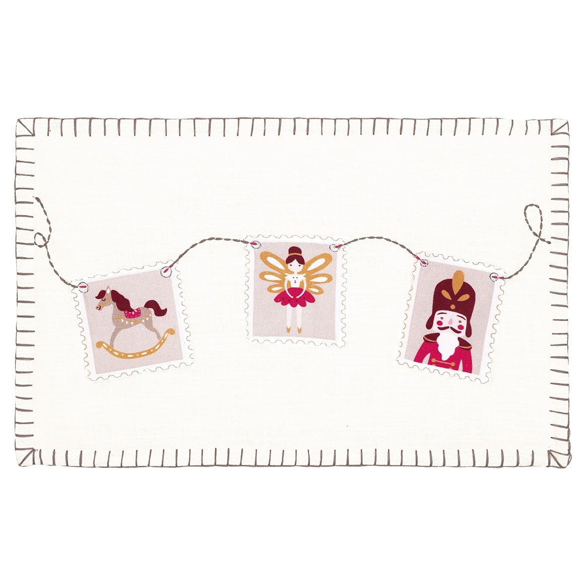Upozornění: úvodní foto je pouze ilustrační, lemovka a špagátek s navlečenými poštovními známkami je v barvě bordó, jako na fotogtrafii v galerii. délka 50 cm / šířka 30 cm Vyrobeno z bavlny.