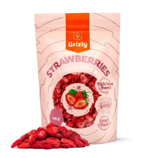 Křupavá svačina ve větším obalu. Je znovuuzavíratelný, takže lyofilizované jahody neztratí nic ze svojí čerstvosti a křupavosti. Jakmile naše lyo jahody ochutnáte, už nebudete chtít žádné jiné. Díky šetrnému sušení mrazem jsou GRIZLY lyofilizované jahody plné vitamínů a živin stejně jako čerstvé jahody. Stanou se tak bohatým zdrojem vitamínů nebo vlákniny. Navíc krásně křupou, proces lyofilizace je totiž zbavil vody. A protože je balíme do znovuuzavíratelného obalu, tuto vlastnost si uchovají. krásně křupavé 100% přírodní bez přidaného cukru díky lyofilizaci si zachovává svoji původní barvu, chuť i vůni lahodná svačina praktické větší balení Složení: Lyofilizované jahody plátky 100 % Země původu: Německo, Čína, Turecko, Egypt, Polsko, Slovensko Balení: Praktický znovuuzavírazelný PP obal Skladování: Skladujte na tmavém, chladném a suchém místě Složení: Výživové údaje na 100 g Energetická hodnota: 1378 kJ / 328 kcal Tuky: 4,1 g z toho nasycené mastné kyseliny: 0,2 g Sacharidy: 56 g z toho cukry: 14 g Vláknina: 19 g Bílkoviny: 7,2 g Sůl: 0,03 g