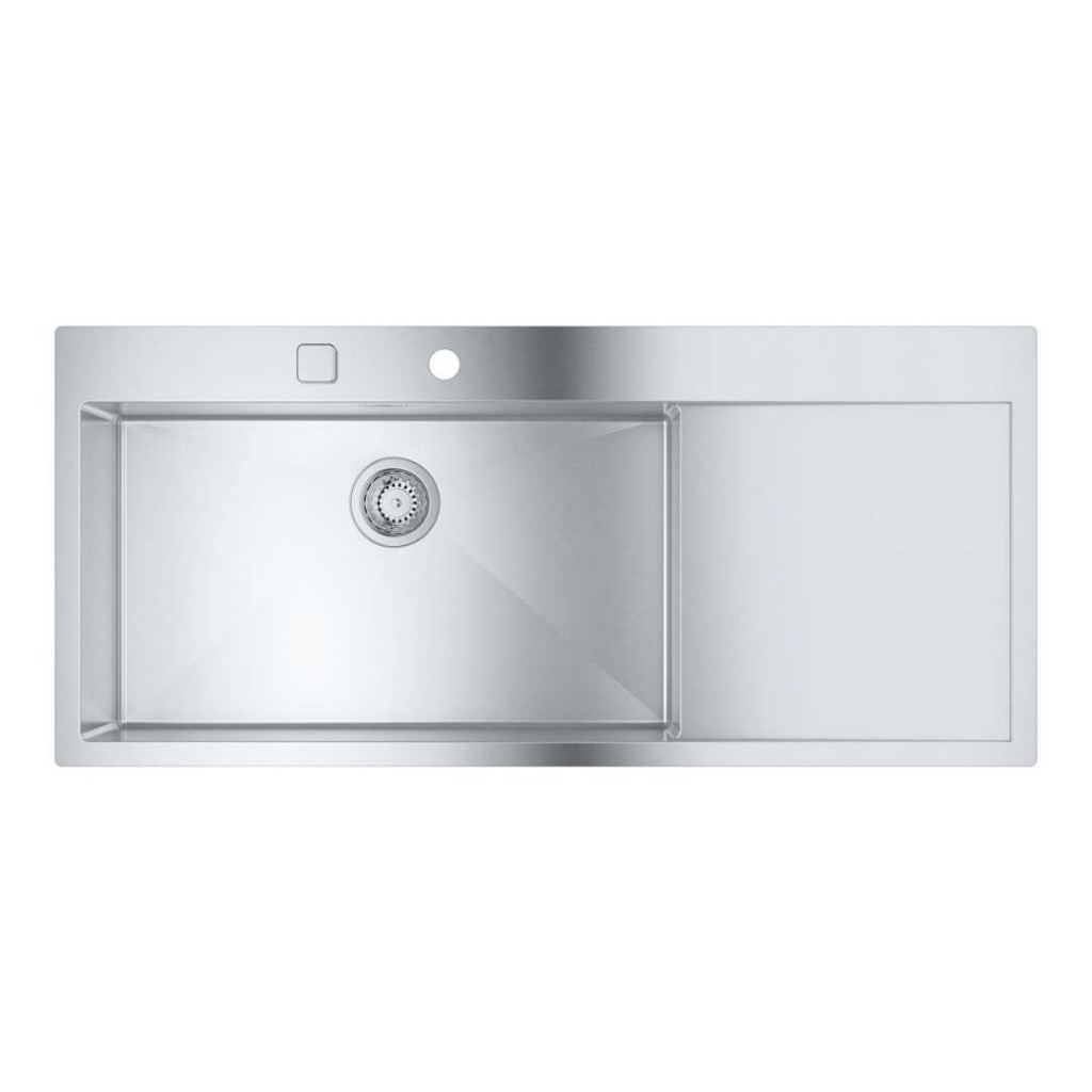 Kuchyňský nerezový dřez K1000 s odkapávací plochou vpravo montáž: k zapuštění, min. šířka kuchyňské linky 800 mm pravostranná instalace, výřez: 1145x505 mm celkový rozměr: 1160x520 mm jednodřez 710x400 mm, hloubka 200 mm materiál: kartáčovaná nerezová ocel, tloušťka 1 mm GROHE StarLight AlSl 304 povrchová úprava GROHE QuickFiX instalační systém GHOHE Whisper speciální izolační vrstva tlumící hluk odtékající vody Příslušenství automatická odtoková souprava s krytem síto odtoku montážní sada technická dokumentace